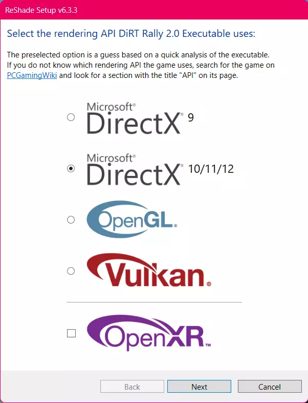 如何安装ReShade 1. 前往ReShade官网下载最新版本。 2. 运行并安装下载好的“ReShade_Setup_6.X.X.exe”。 3. 若不确定如何正确安装ReShade,可参考截图操作。 3.1 首先选择游戏可执行文件,然后选择DirectX 10/11/12。