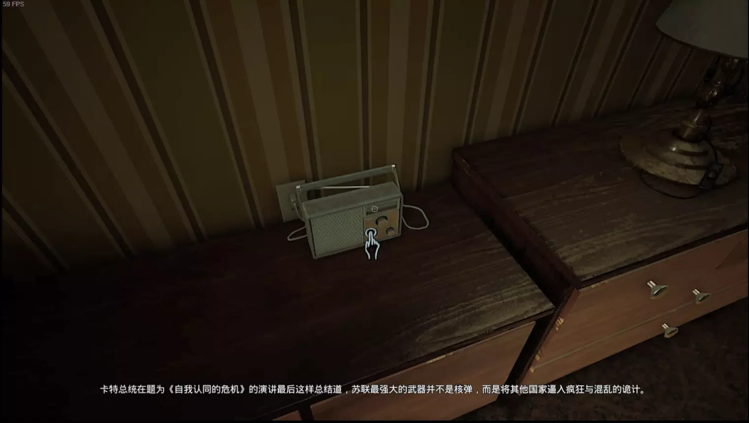 第五章 隔墙有耳 查看桌上破译一半的电报,随后来到一楼过道拨打电话。 挂断电话后先不去拿定位器,在一楼过道的收音机听第二段新闻。