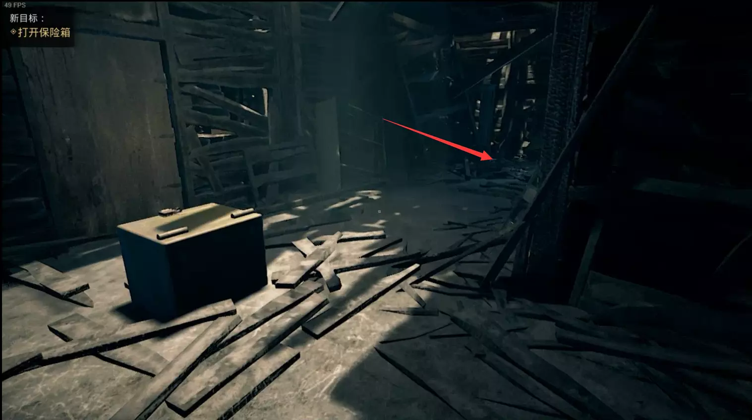 继续推进剧情,直到将保险箱撬下来,使其跌落至旅馆废墟下层。在角落可以收集到【圣经的一页】。