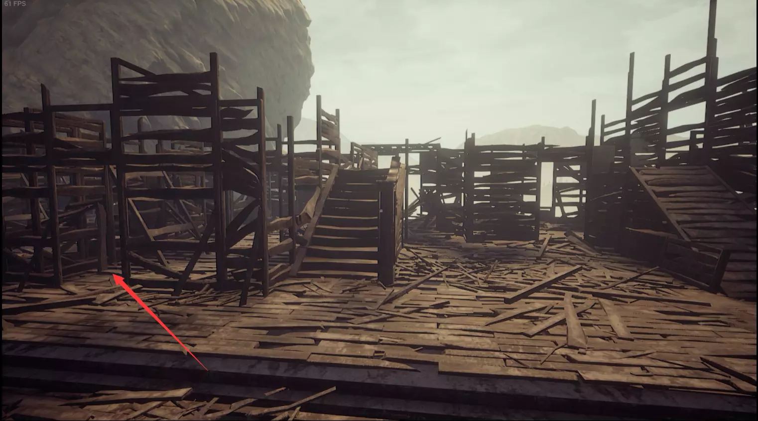 继续推进剧情,直到发现树上吊着的尸体。先不要过石桥回家,找到另一侧的断头石桥,在断头石桥右侧进入废墟,找到第一个箱子。