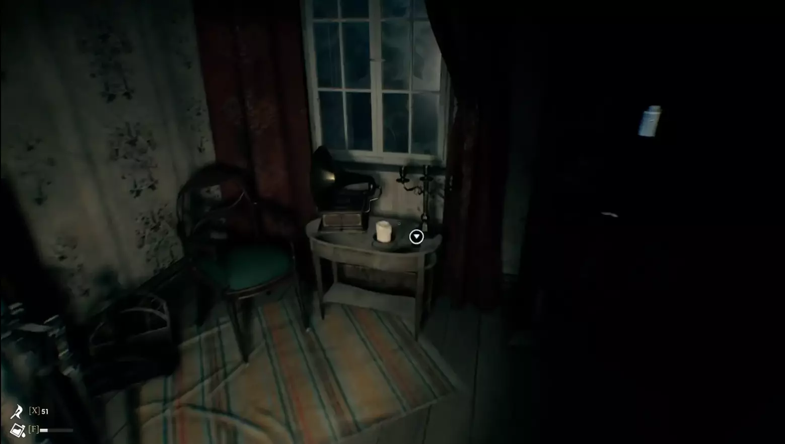 继续推进剧情,离开房间后开始追逐战,直至进入303房间摆脱鬼魂。在303房间窗边小桌的盒子里可以收集到【玛德莱纳的耳环】。