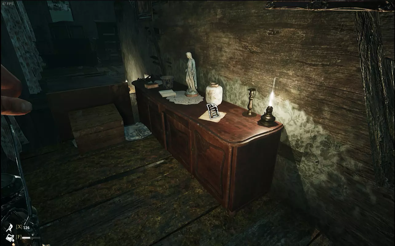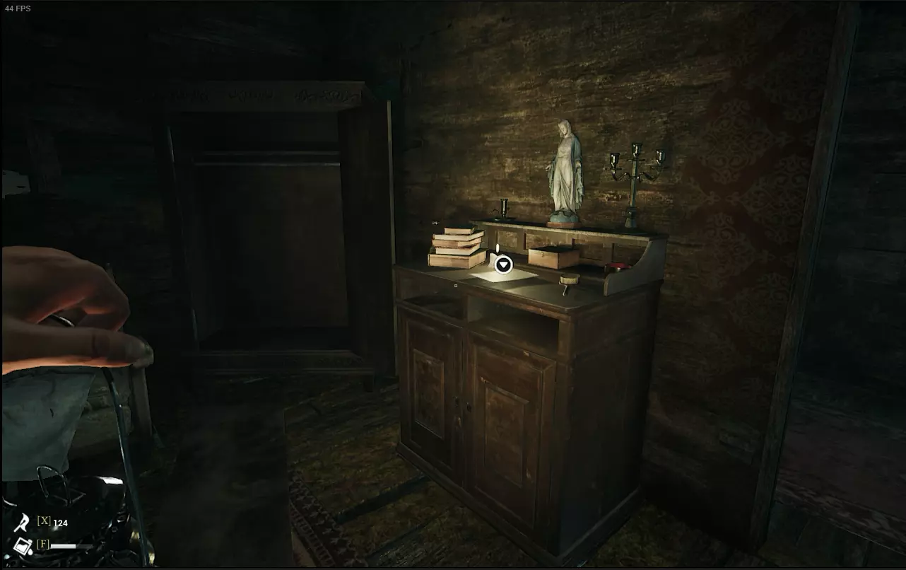 继续推进剧情,前往玛莉亚的家。在进门左手边的柜子上可以收集到【沼泽地女人的第三张字条】。