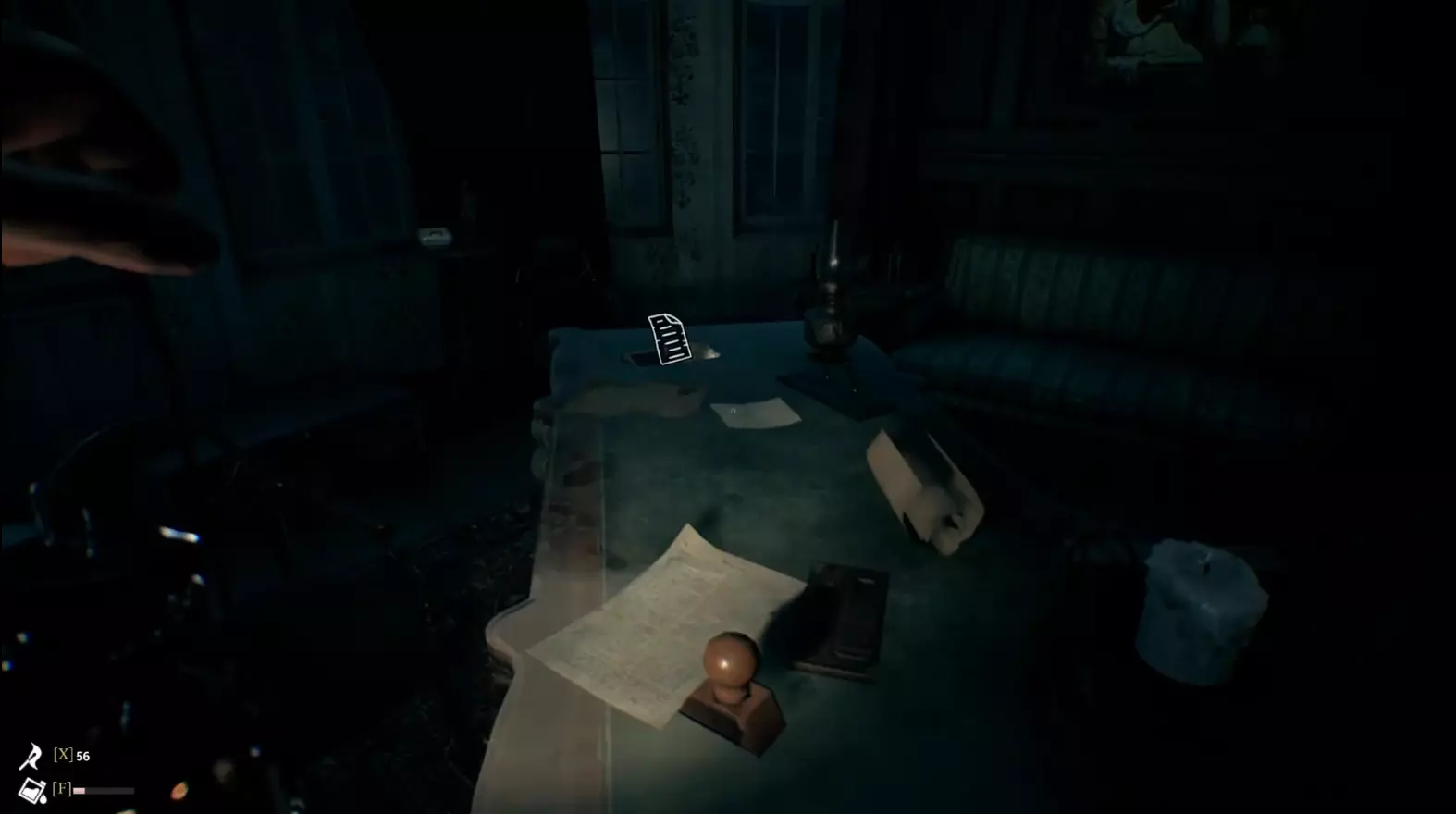 在二楼走廊左手边尽头进入右侧房间,在桌上可以收集到烟斗