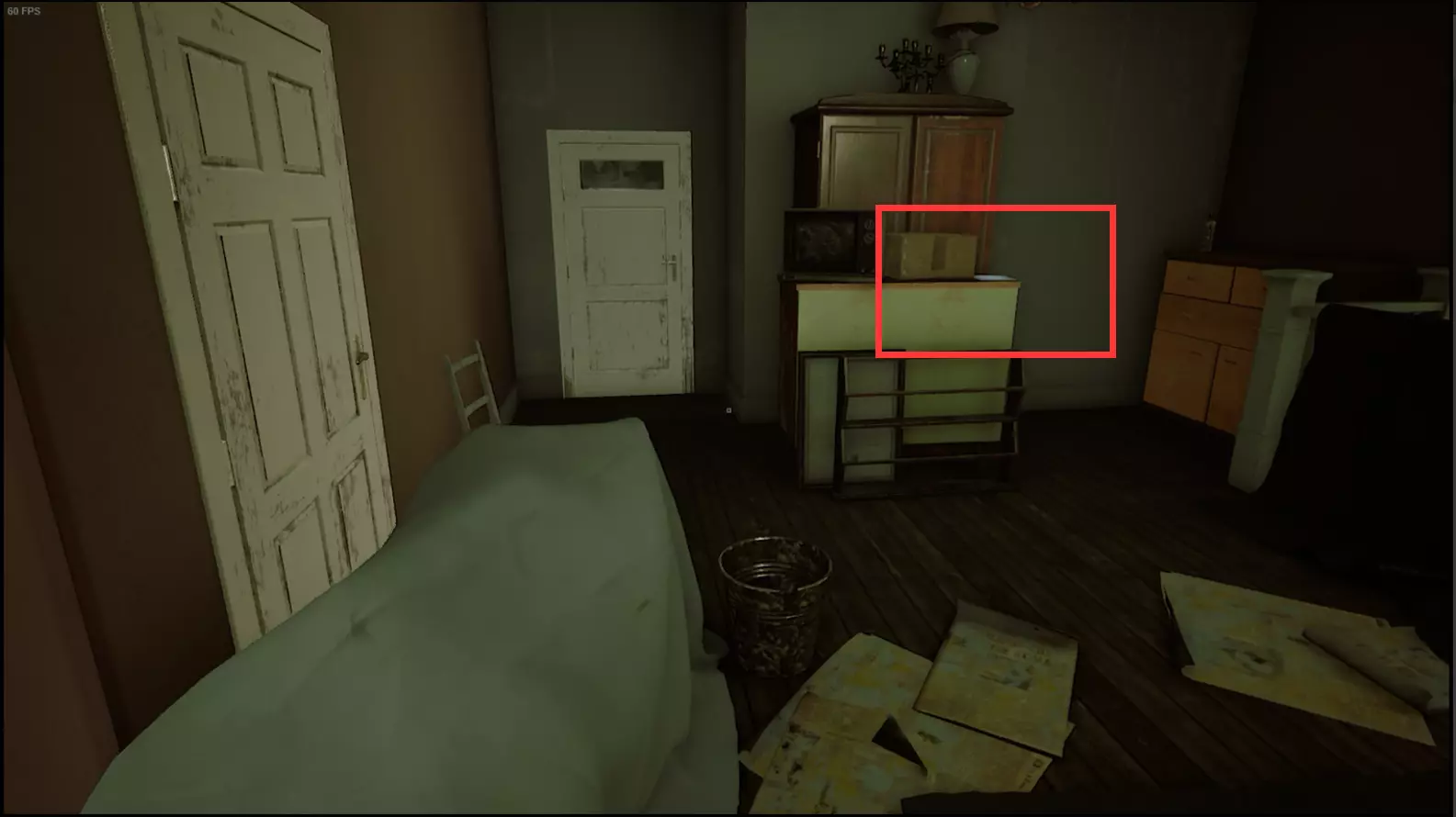 继续前进,绕过中间有个大洞的房间,进入走廊对面的婴儿房。在入门右手边的柜子上可以收集到【玛莉亚给侦探的信(草稿)】。