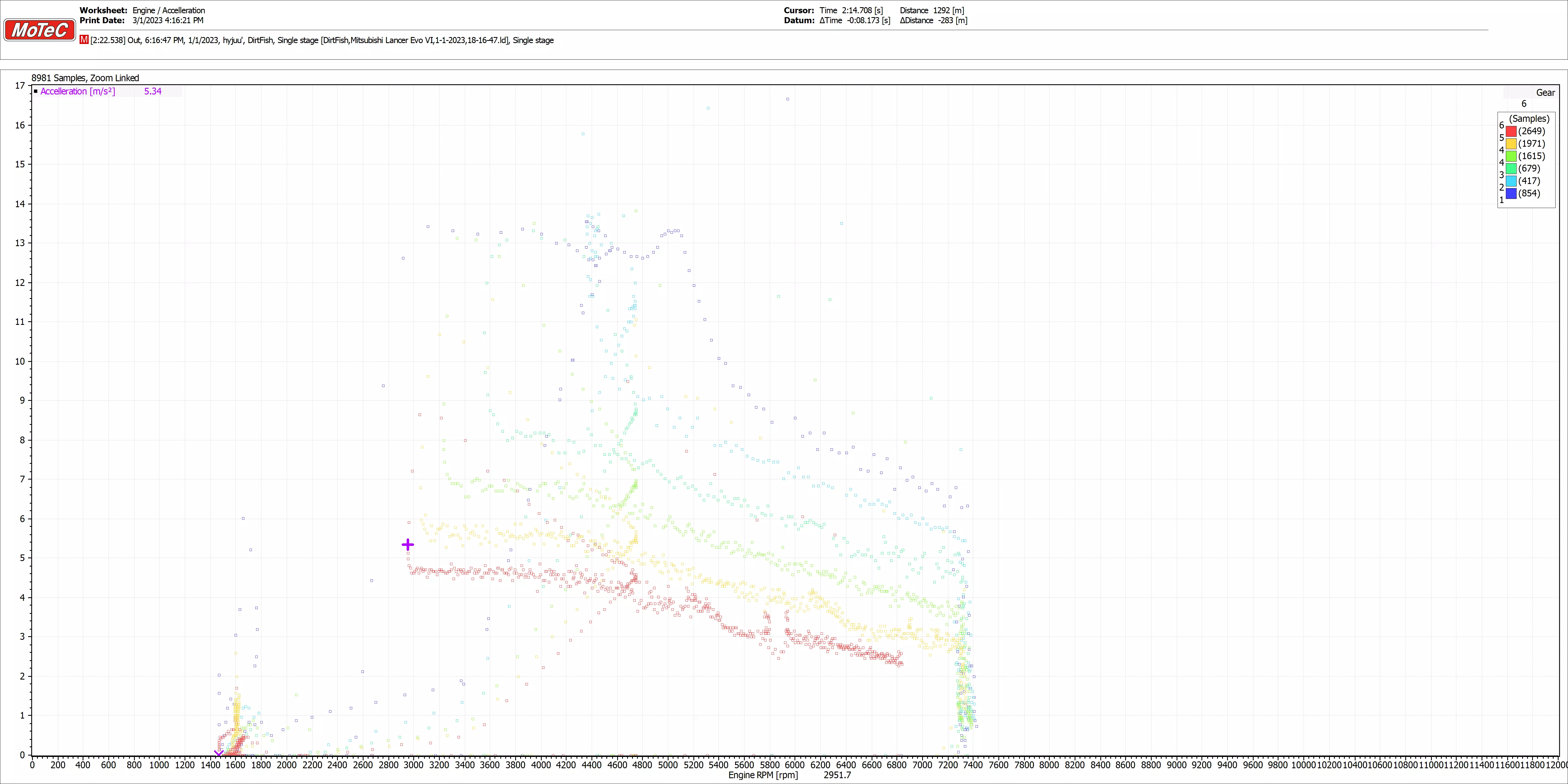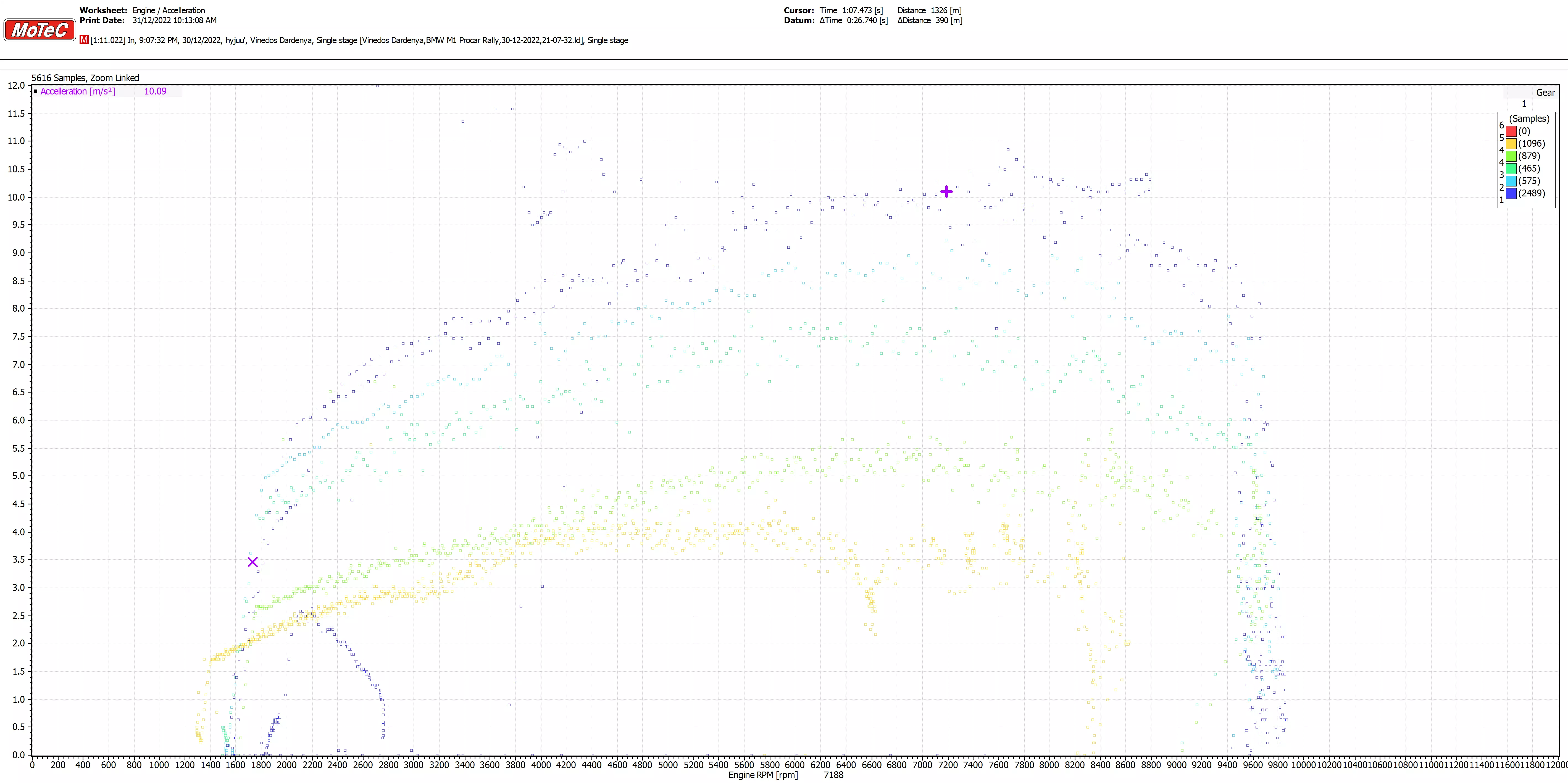 动力区间:6500-7500转/分钟 加速度: