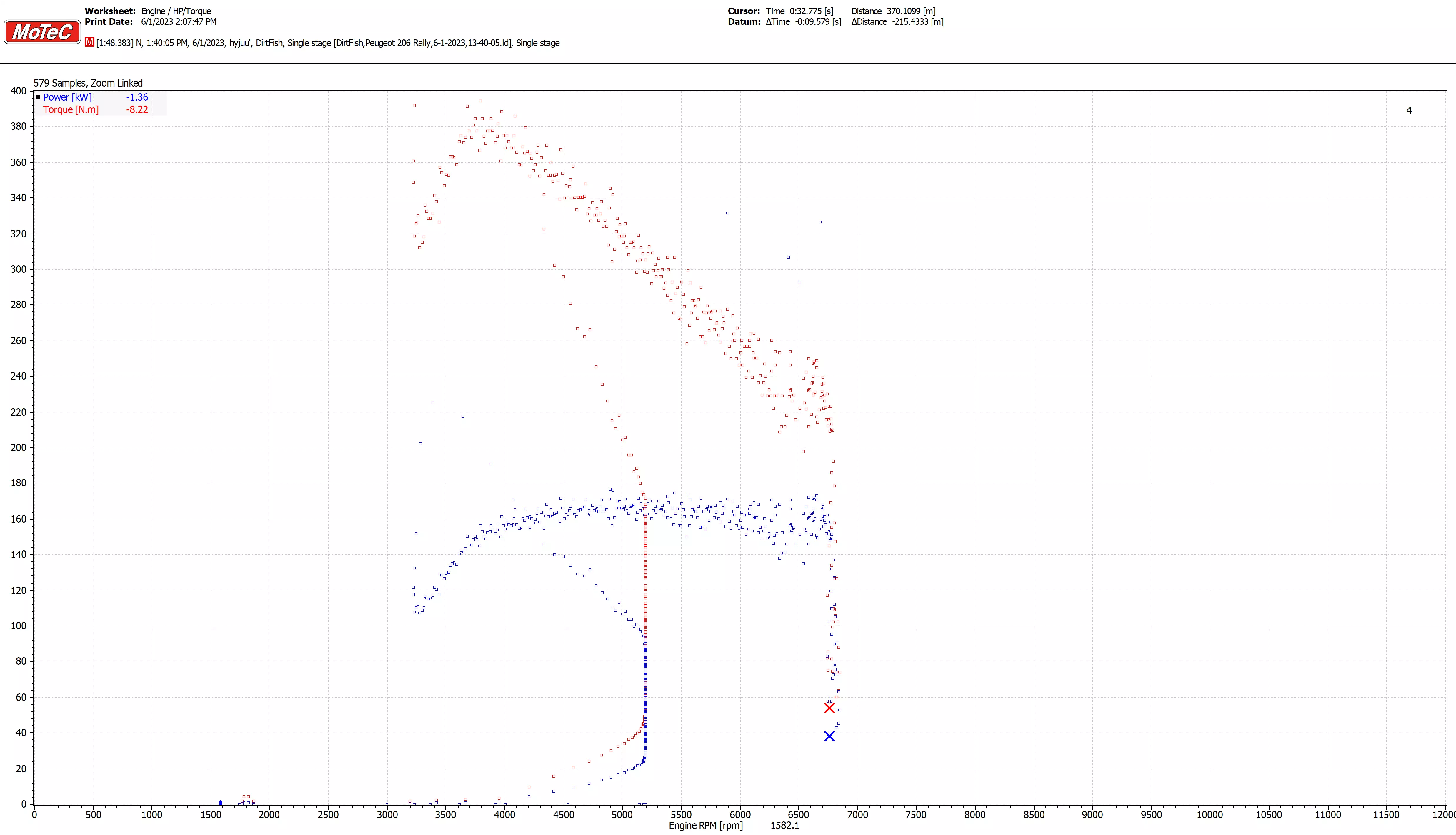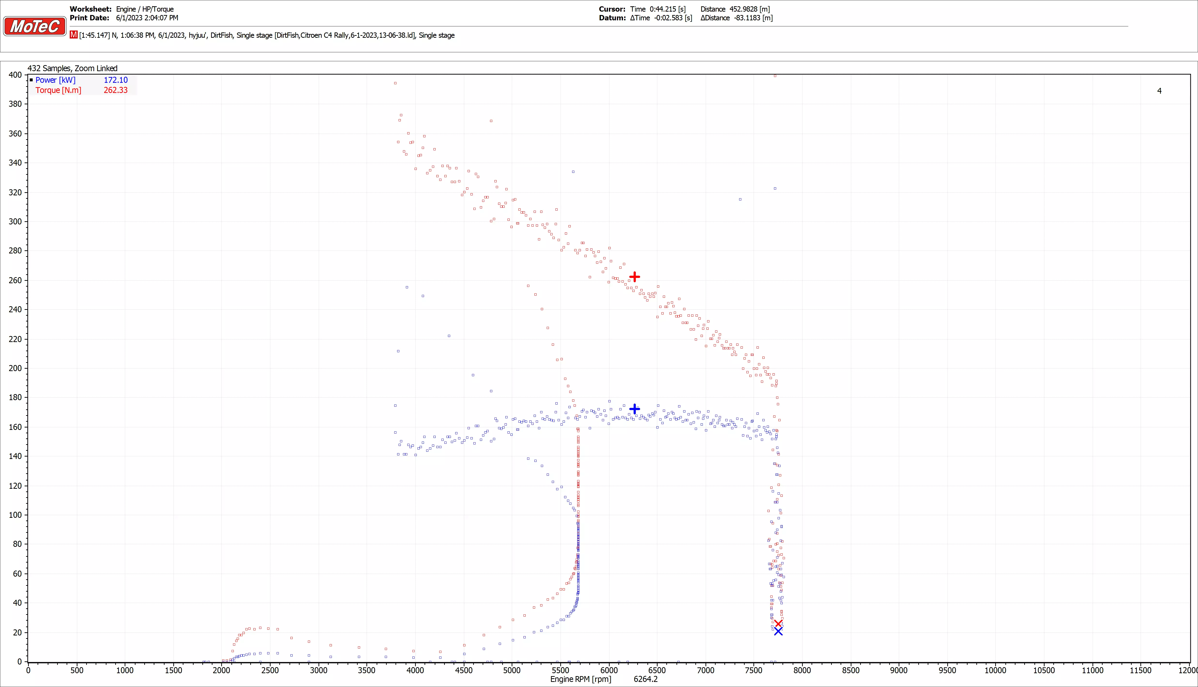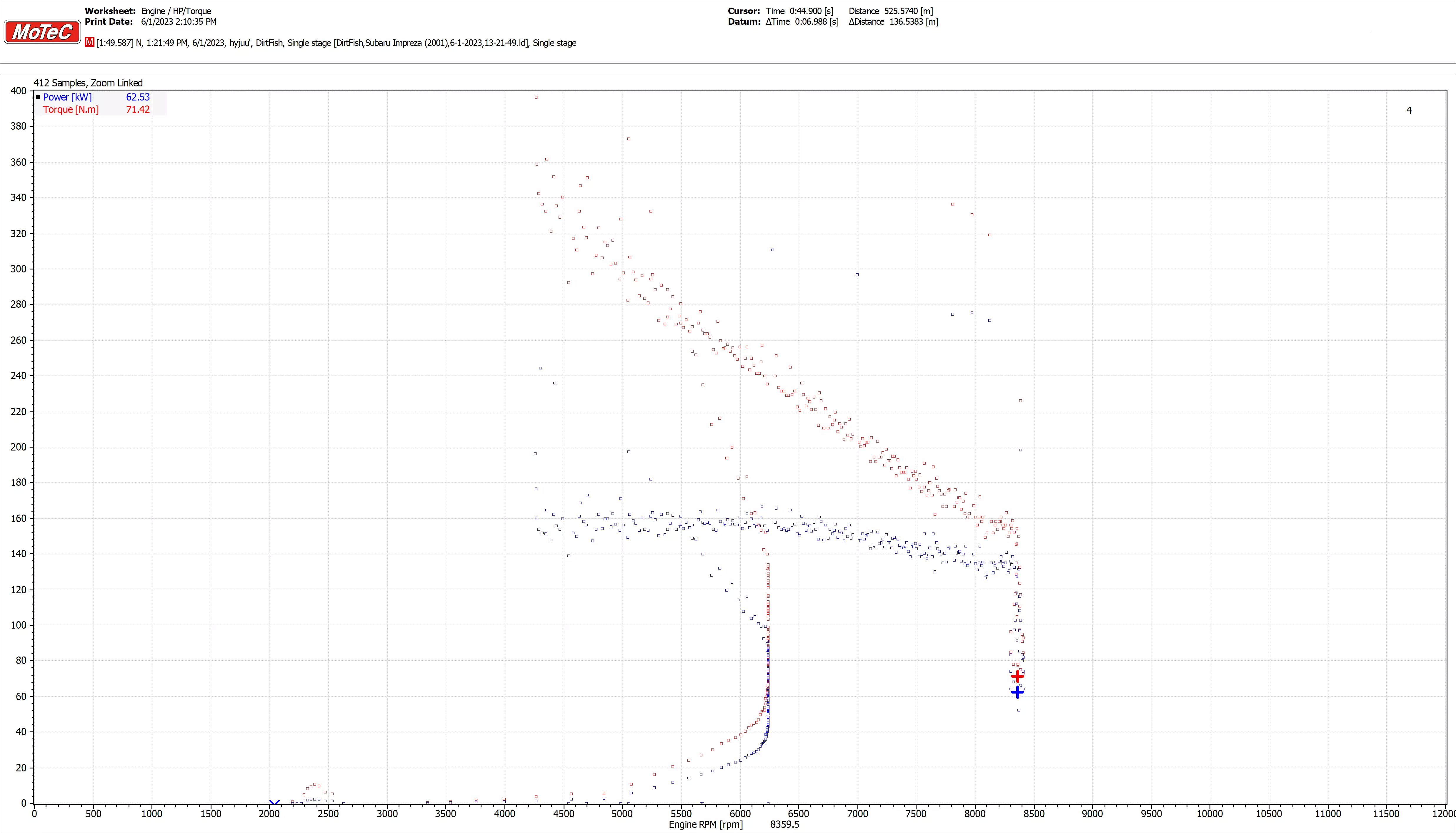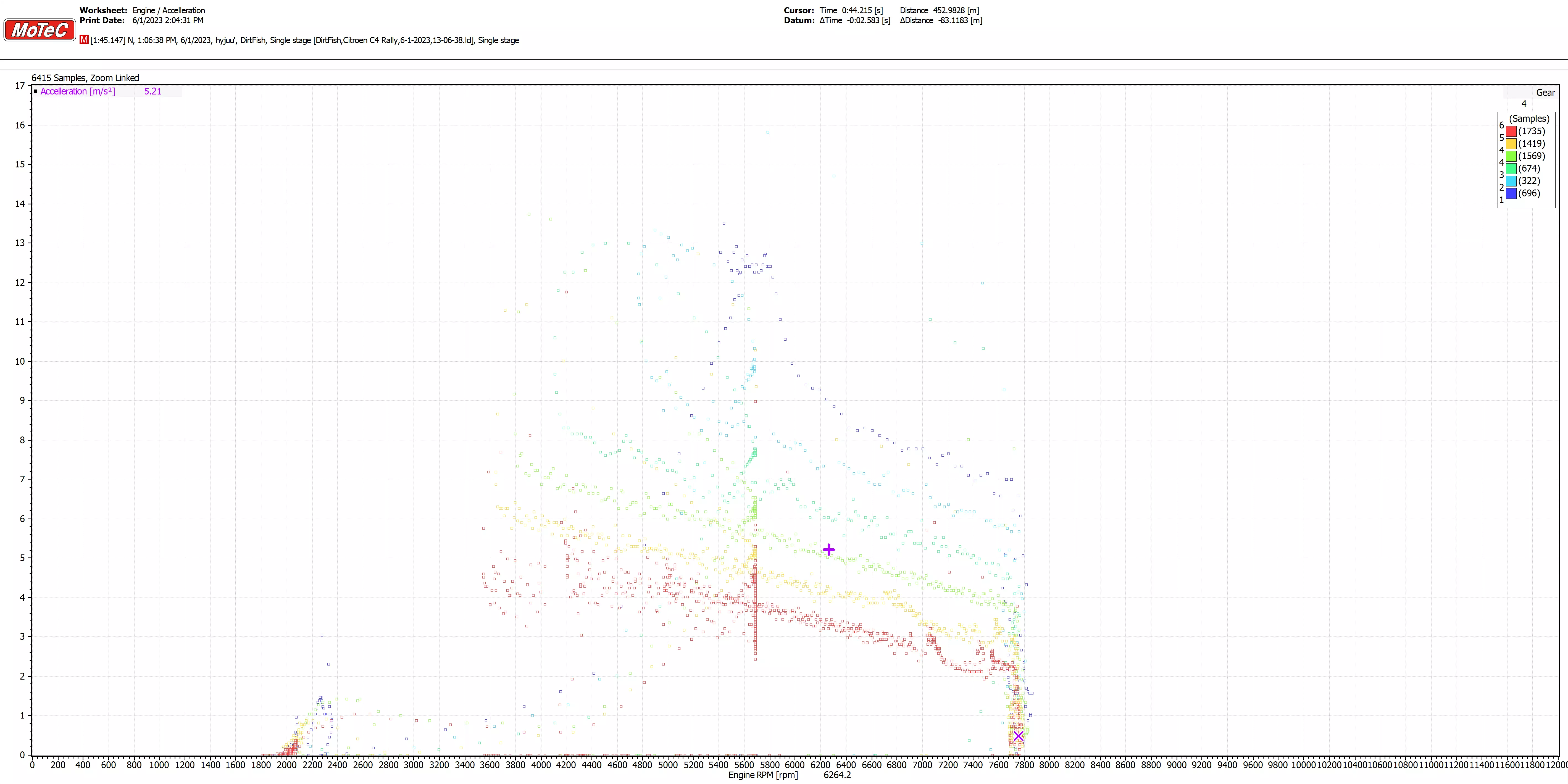 功率区间:6250-8000转/分钟 动力介入点:5968转/分钟 加速度: