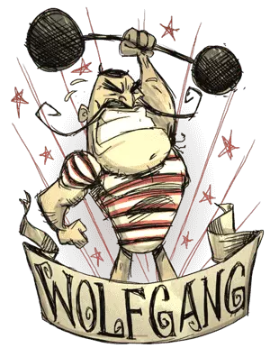 沃尔夫冈 昵称:大力士 座右铭:我很强壮!没有人比我更强壮! 精神值:200 生命值:150~300(饥饿时150,吃饱时300) 饱食度:300 空手伤害:0.5倍~2倍(饥饿时0.5倍,吃饱时2倍) 能力: 1. 吃饱的时候会变强大 2. 胆小鬼,害怕黑暗和怪物 总结: 体型会随着饱食度的高低而变化。在黑暗和与怪物的战斗中,精神值下降比其他人物快10% 在饱食度高的时候,饱食度的下降速度会更快(最高达到其他人物的3倍)。 适合中级玩家使用,要随时保持较高的饱食度意味着需要大量的食物。吃饱状态下打怪会变得非常轻松。