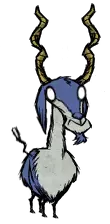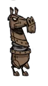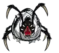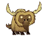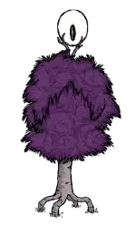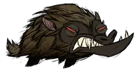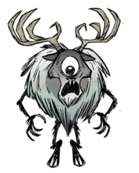 类型:敌对 出没地点:夏季BOSS。DLC中夏天出现,会被落叶树果实吸引。秋天消失。 生命值:2750 攻击力:75、37.5x3(112.5,火焰三连击)(对玩家);150、75x3(225,火焰三连击)(对其他生物) 攻击间隔:2.5 攻击范围:4 移动速度:4、2(刚解冻时) 精神影响:-400/分钟 特殊能力:火焰三连击;被火焰环绕,可以点燃周围可燃物,对周围生物造成火焰伤害。 战利品: