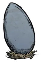 由驼鹿产下。用锤子砸4下可以使它孵化,砸的同时会对玩家造成10点伤害。也可以使用风湿痛来无伤破坏掉蛋。破坏后会孵化出5只小鹅,驼鹿巢保留,在春天仍然可能继续刷新驼鹿并在巢上下蛋。蛋和巢穴在夏天会消失。 【小鹅】