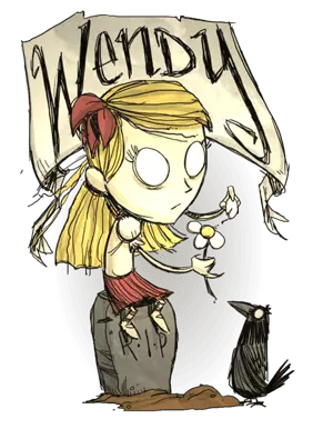 温蒂 昵称:丧亲者/鬼妹 座右铭:阿比盖尔!快回来!我还想跟你玩呢! 精神值:200 生命值:150 饱食度:150 空手伤害:0.75倍 能力: 1. 有一个双胞胎姐姐 2. 不畏惧黑暗(在黑暗中精神值下降速度比其他角色慢25%) 3. 伤害低 总结: 开局自带一朵花,需要2~4天充能。当充满能时,放在地上可以悬浮,此时在附近杀死生物即可召唤出阿比盖尔的鬼魂。鬼魂会保护温蒂不受怪物的攻击,也可以通过鼠标左键点击怪物命令鬼魂主动攻击。鬼魂攻击力白天低,黄昏中,晚上最高。鬼魂死后会重新变成未充能的花朵。 适合新手玩家。自从有了姐姐,妈妈再也不怕我被怪物欺负了。当然,姐姐打首领还是比较吃力的。