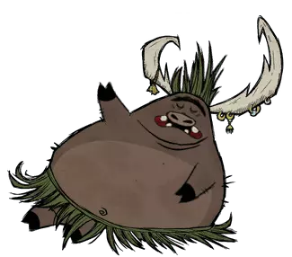 类型:敌对 出没地点:秋季BOSS 生命值:3000 攻击力:100(对玩家),200(对其他生物) 攻击间隔:3 攻击范围:6 移动速度:3,6(战斗时),10(追击玩家短距离冲刺时) 精神影响:-400/分钟 特殊能力:攻击可以击落玩家的武器,范围攻击。四处觅食,会主动吃掉农场的作物并摧毁农场,会摧毁箱子和冰箱并吃掉里面的食物 战利品: