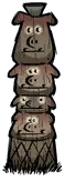类型:中立 出没地点:3天之后每砍伐一棵常青树,周围的树都有1.33%几率变成树人守卫。30天以上有几率一次出现两个,80天以上有几率一次出现三个。 树人守卫分三种体型【小】【中】【大】,属性各自不同。 生命值:1400, 2000, 2500 攻击力:35, 50, 62(对玩家),105, 150, 186(对其他生物) 攻击间隔:3 攻击范围:2.1, 3, 3.75 移动速度:1.05, 1.5, 1.875 精神影响:-100/分钟 战利品: