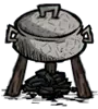 烹饪锅:烹饪出的料理能大幅提升饱食度。最常见的肉丸仅需1个肉和3个浆果即可制作,其中肉可以使用怪物肉,食用后能恢复62.5点饱食度!在DLC中,放在烹饪锅上的食物会随时间腐坏,建议制作一个烹饪锅即可,即做即食。关于食物的详细信息可查看料理篇。