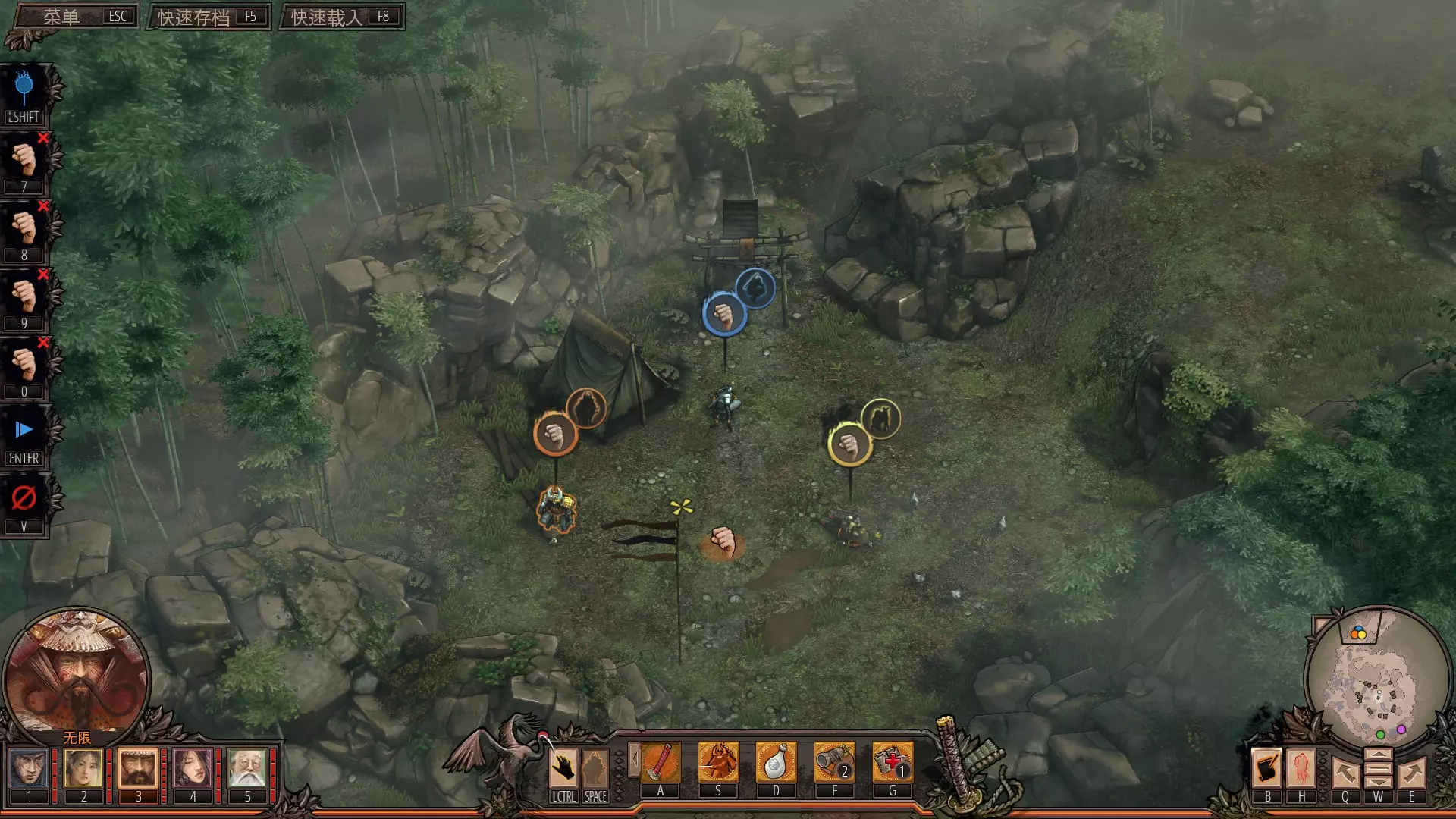 在骏府城这个位置,老头的手雷一次可以炸五个人,设置好影子动作后快速存档,然后无限按F8回车回车就能完成。