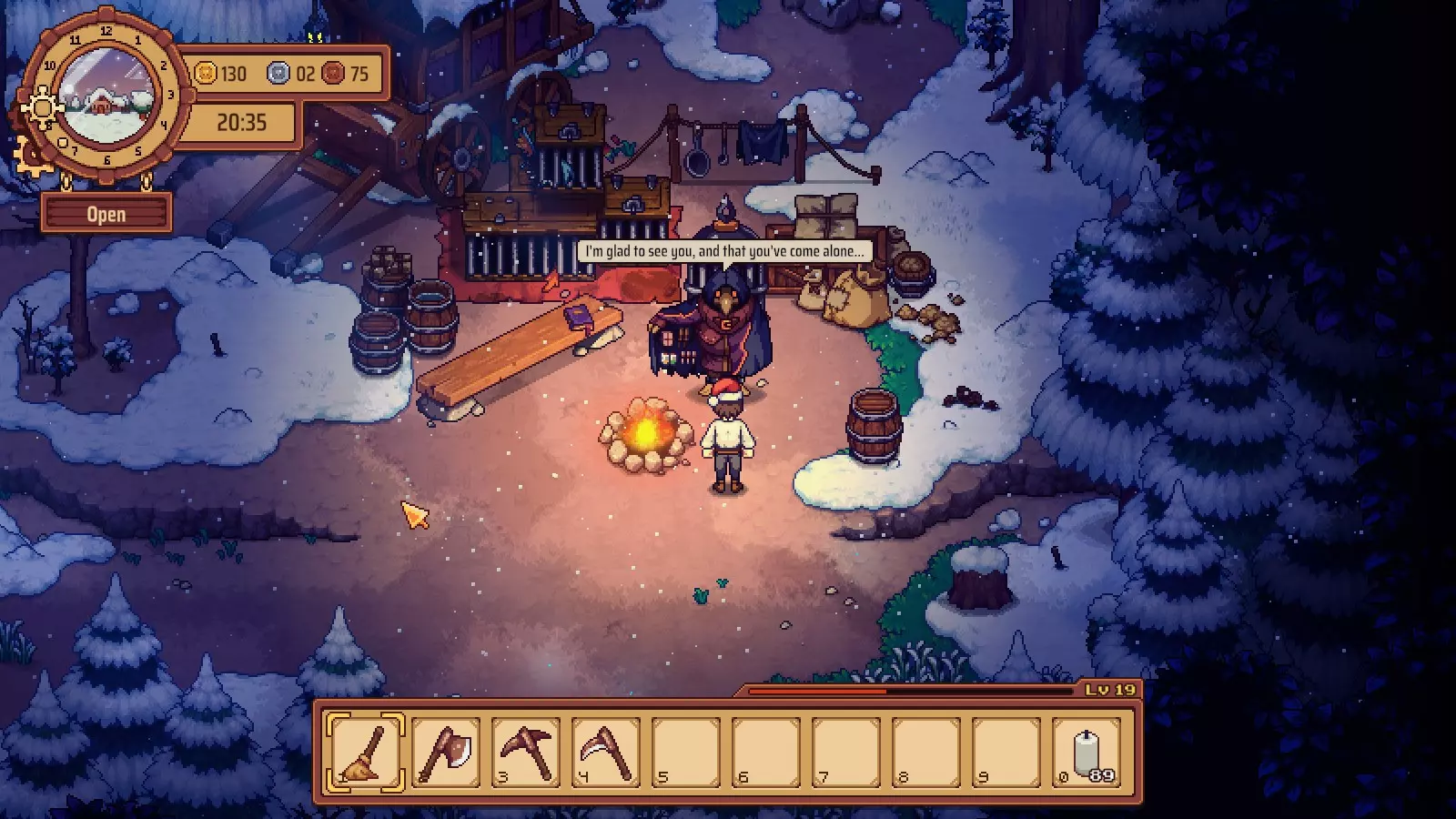现在你看到篝火旁有一个陌生的男人。