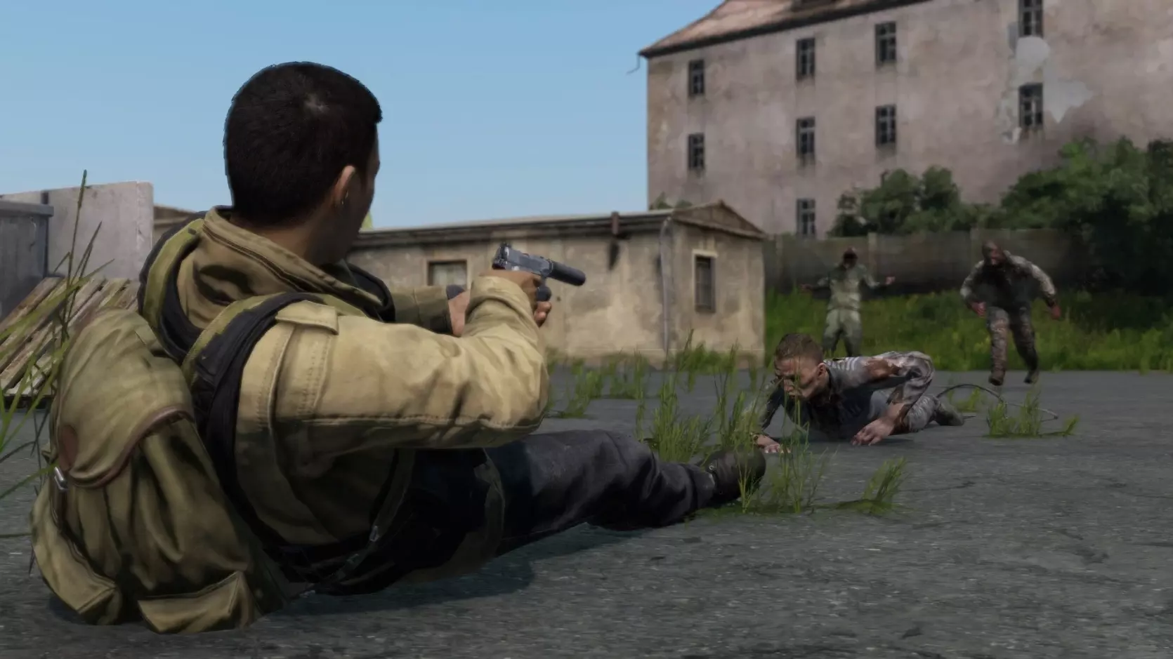 接下来我将详细为你解读《DayZ》中第一人称与第三人称视角引发的争议,分析两种视角各自的特点,并基于我的游戏经验给出个人看法。由于使用不同视角会使游戏风格和玩法发生彻底改变,因此这一话题存在诸多争议。争议源于第三人称视角为角色提供了过宽的视野范围,这使得玩家无需暴露自身就能观察周围环境。也就是说,玩家可以躲在墙后观察墙另一侧的敌人,同时自身不会出现在对方的视野范围内,因此对方无法得知自己正被观察,从而容易被击倒。诚然,在观察时无法攻击敌人,但这能让玩家选择最佳的攻击时机。 这导致在战斗中使用第三人称视角会产生显著差异,使采用该视角的玩家占据优势,正如我们在后续图片示例中所看到的那样。