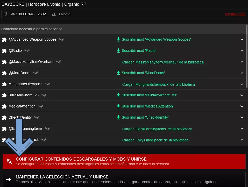 现在选择你想要进入的服务器,然后点击【加入】。 此时会显示服务器的模组,下方有两个选项,请点击【配置可下载内容和模组并加入】。