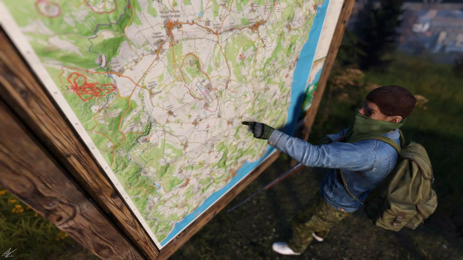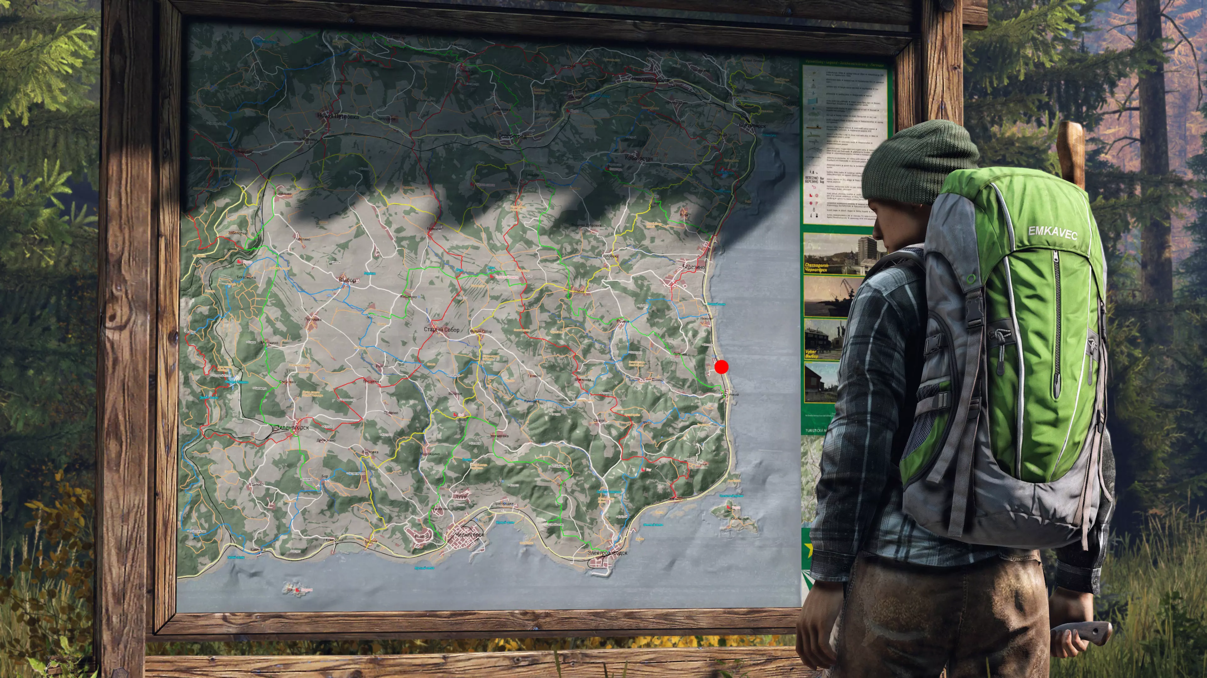 请注意,该地图基于苏联旧领土,因此所有地点名称均为俄语,但无需担心,在线地图上会同时显示俄语名称及其翻译。 你需要知道,在黑俄罗斯,你会出现在海岸或海岸附近,因此,为了更轻松地在地图上确定位置,请尽量不要远离大海,并按照以下步骤操作: 1. 出生后,环顾四周寻找大海,如果你看不到大海,就移动到找到公路或铁路为止。 2. 沿着大海/公路/铁路前进,直到找到村庄/城市。
