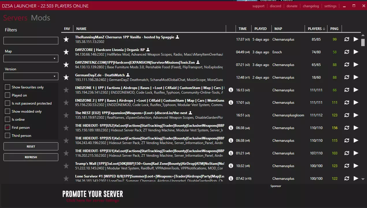 有时游戏官方启动器会出现故障,当我们连接带有模组的服务器时可能会报错。这里提供一些可下载的PC版启动器。 通过这些启动器,我们可以更流畅地查看服务器列表,界面更友好,出现故障的概率也更低。 安装启动器后,需要保持Steam处于打开状态,这样才能连接《DayZ》的服务器并查看它们。启动器会与我们的账户同步,无需输入密码等信息。这能让我们在进入服务器时自动订阅该服务器的模组。这些启动器非常实用,大多数玩家都在使用。另一方面,我们有浏览器在线地图,它们有助于查看我们的位置、载具刷新点、军事 loot 位置、资源点等信息。 接下来我们来介绍启动器: 《DayZ》启动器 我们有两个选择(我两个都用,Magic Launcher 用于下载模组,DayZ Launcher 用于寻找服务器)。 DayZ Launcher:功能相当不错,既可以用于寻找服务器,也可以订阅模组,通常使用效果很好,是《DayZ》社区最常用的启动器。进入服务器时很少出现故障,如果出现问题,可以使用另一个启动器。有时最多可能会导致 Steam 下载暂停,遇到这种情况只需关闭启动器并重启 Steam即可。缺点是无法查看你的好友正在哪里游玩。它在服务器搜索方面表现出色。