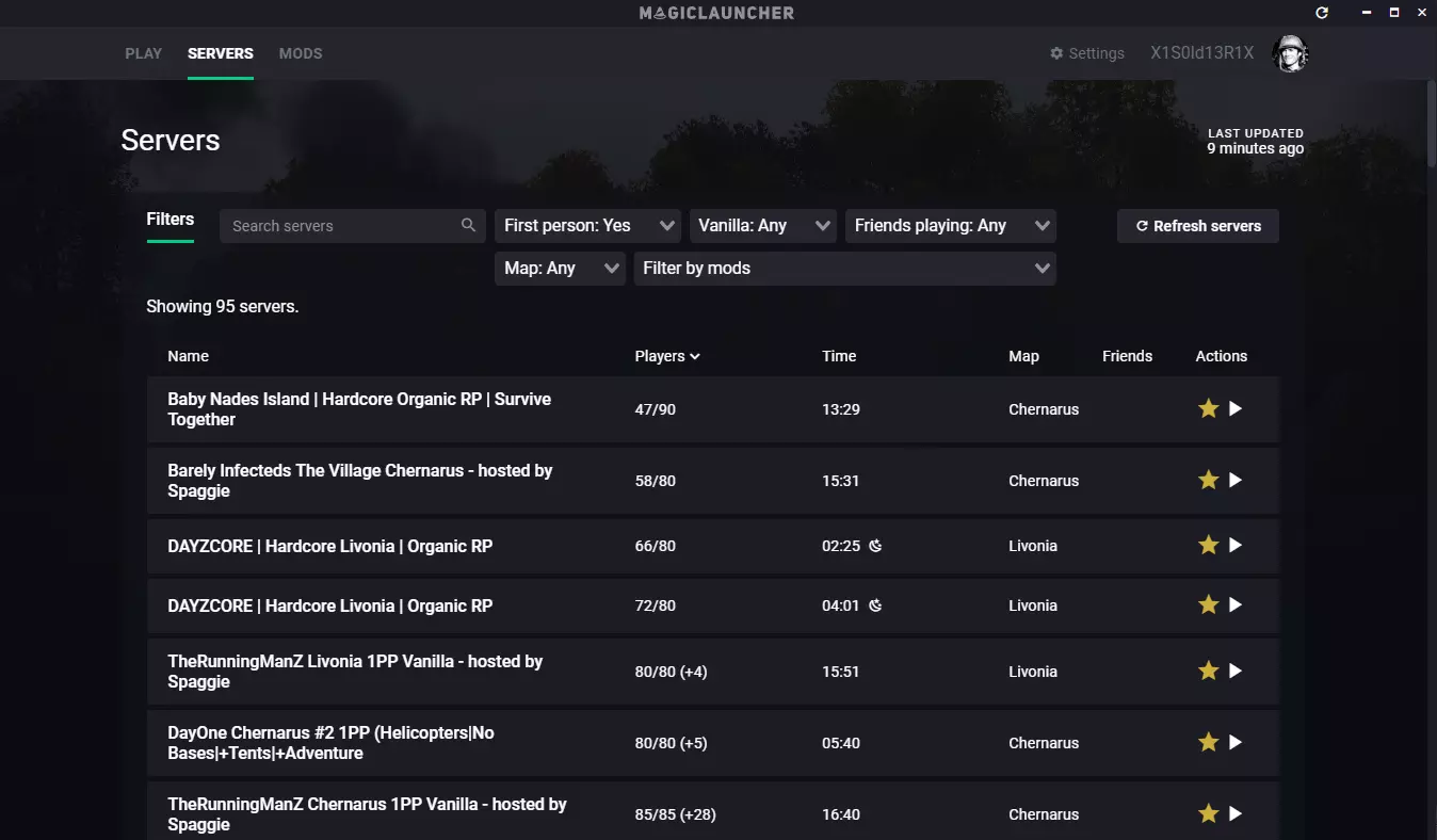 Magic Launcher:界面美观且直观,最大的用处是能显示朋友是否在某个服务器中游玩,此时会显示其Steam个人资料照片和服务器信息,你也可以使用筛选功能查看朋友正在游玩的服务器。缺点是按名称搜索服务器时偶尔会出现问题,也不会显示服务器的延迟,但进入服务器时很少出现故障。它非常适合用于下载服务器的模组。