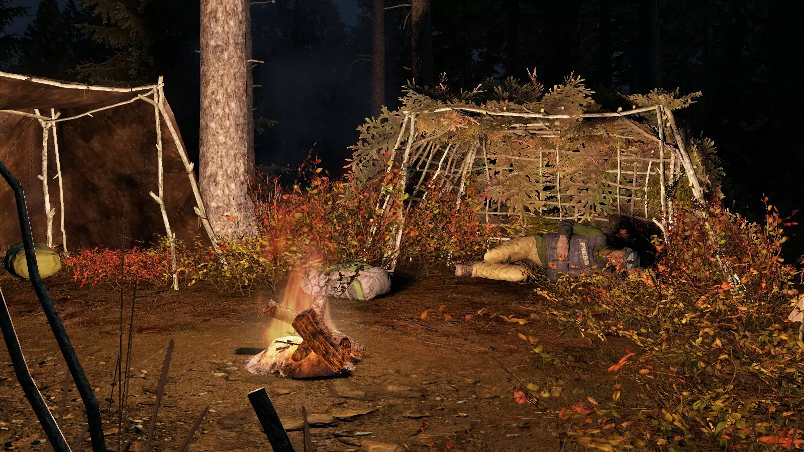避难所非常实用,它可以用来躲避风雨和寒冷,还能存放我们的装备。建造避难所不需要难以获取的材料,也不需要太多时间,所以是建立一个小型藏身处的好选择。此外,如果我们有基地,还可以在基地内建造避难所,作为存放物品的地方。 必要材料: 这些是建造任何类型避难所都需要的常见材料。 - 刀(可选):可以加快建造速度。 - 绳子:可通过12块布制作,布可以用刀切割衣服获得。 - 4根短木杆:可以通过用刀砍伐灌木获得,或者用手慢慢获取。 基本制作方法: 将木杆和绳子组合即可制作。避难所工具包:可通过4根木棍+绳子制作 新手步骤 1. 首先,你需要将4根木棍和一根绳子组合起来制作避难所工具包 2. 现在,将其放置在你想要建造避难所的地面上