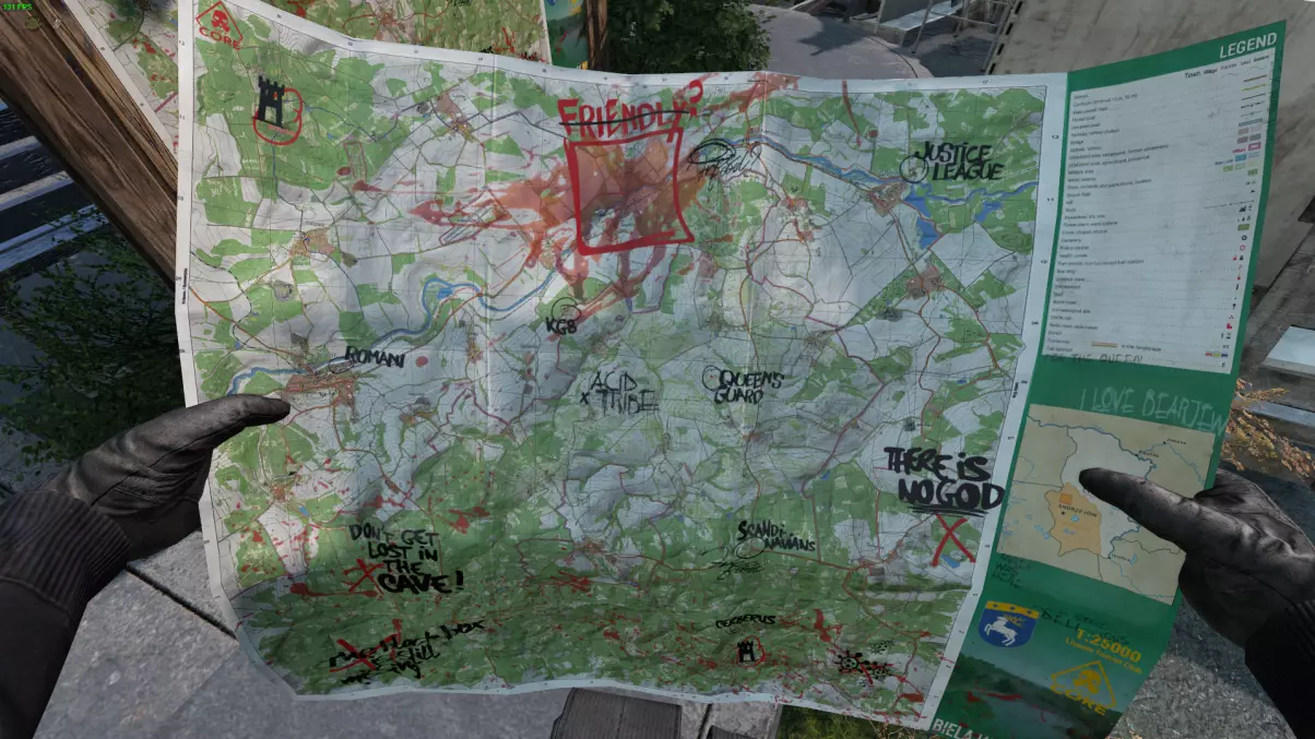 存在一些地形图可以帮助你了解自己的位置和前进方向。要确定位置,你需要前往一个村庄或标志性地点,然后在地图上进行对照。找到地图并不会像GPS那样直接显示你的位置,这和现实情况是一样的。 地图右侧还有图例,会显示你可以找到的地点位置。 在部分服务器中,要正确查看地图,打开地图时你需要按住ALT键,以便能自由转动角色的头部而不会让角色转身。此外,你需要按默认分配的按键进行缩放。如果地图显示模糊,你需要提高纹理的图形设置。你也可以使用在线地图,这样会更轻松,但如果你想更好地享受游戏,尤其是在刚开始玩的时候,不要使用在线地图。没有什么比第一次玩《DayZ》时自己探索地图、强行记住那些西里尔字母村庄名称的含义、在游戏中与其他玩家交流甚至跟随他们去某个地方、使用指南针和地形、查看道路上的地图、根据太阳位置辨别方向、沿着电线移动更棒的了。 【入门指南】小刀
