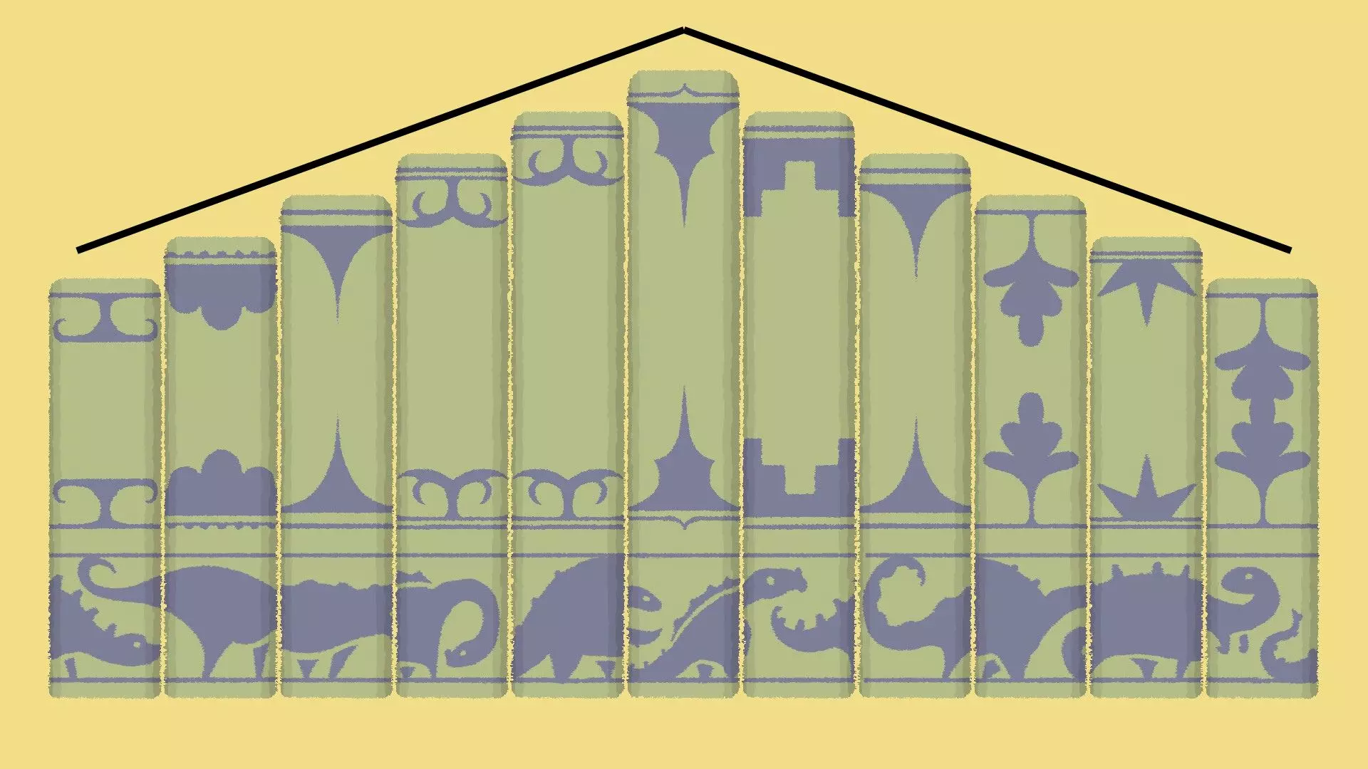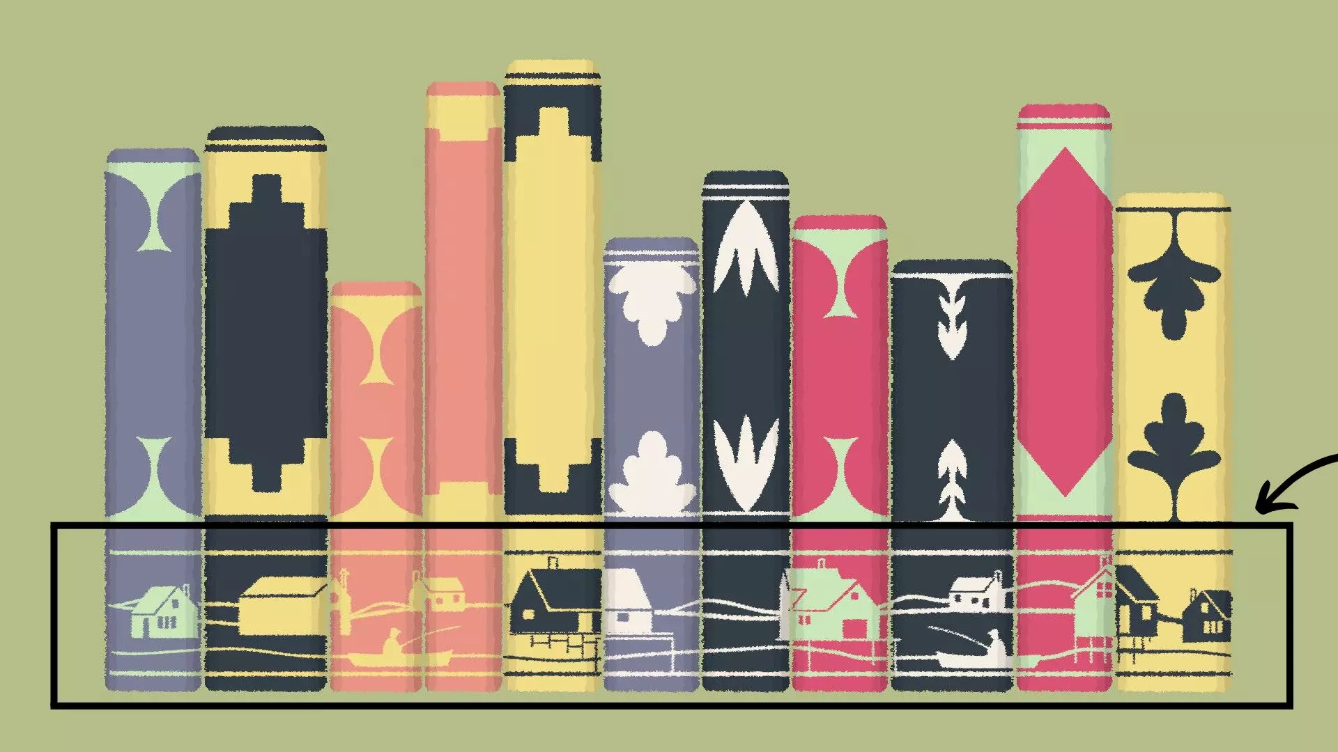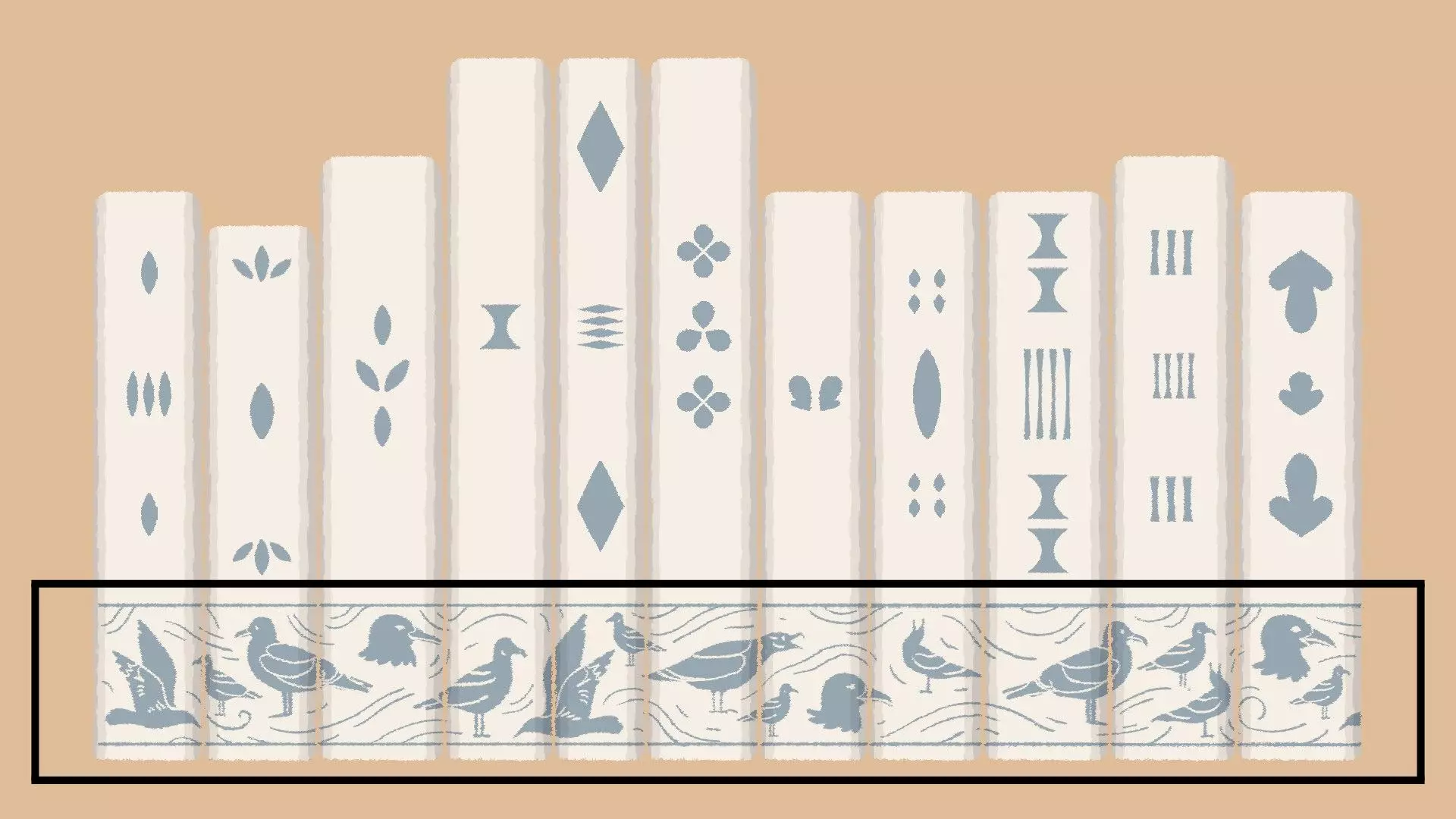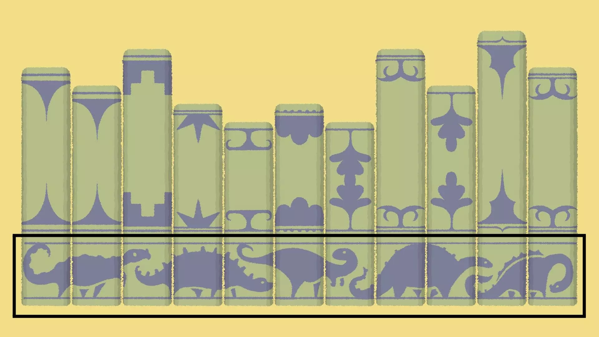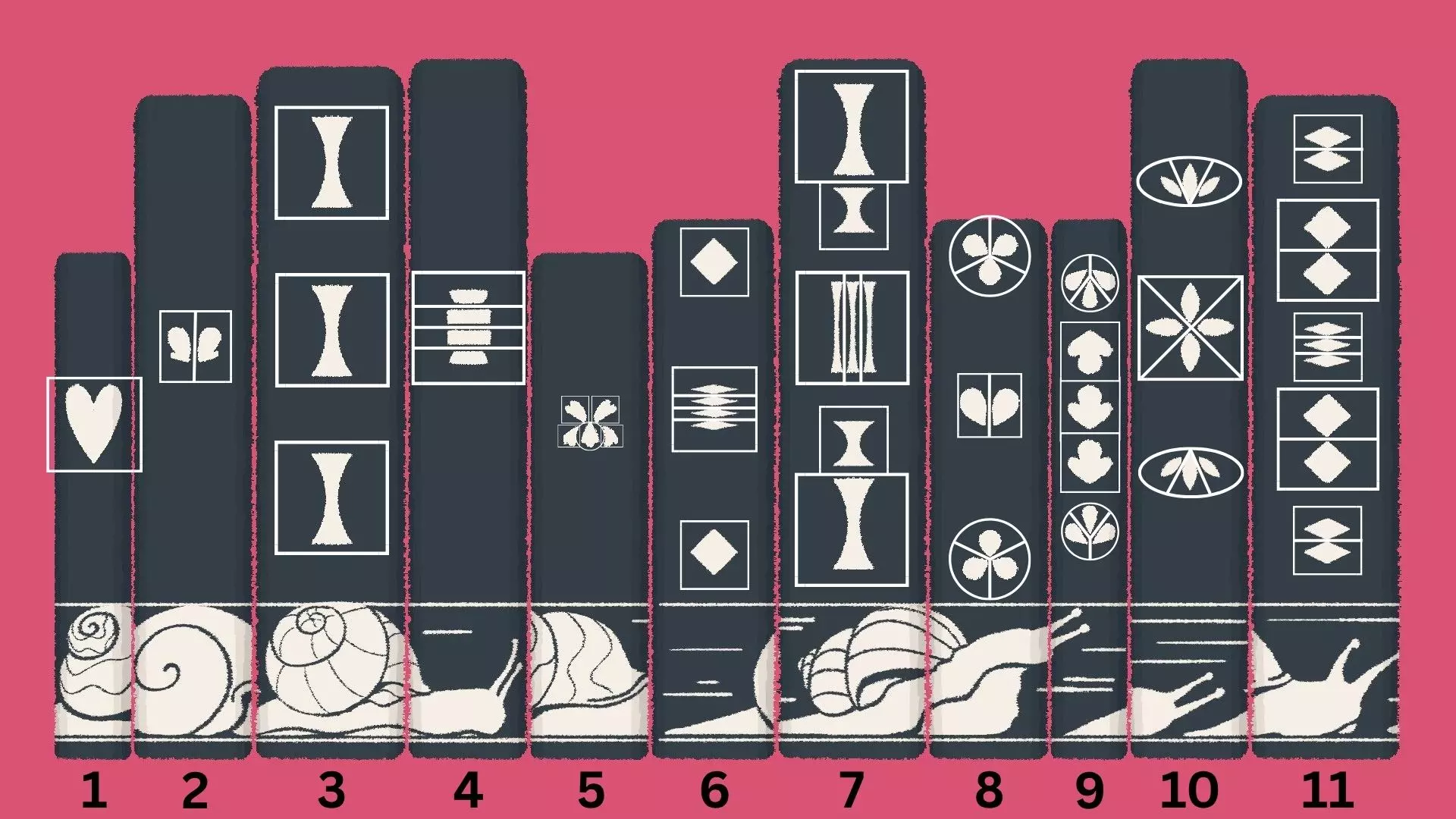 匹配图案解法 [与第一章-第13关相同] 如果你有匹配图案的解法,这会非常明显,因为书脊底部会有图像——你需要将书对齐,使它们形成一个连续的图案。 示例