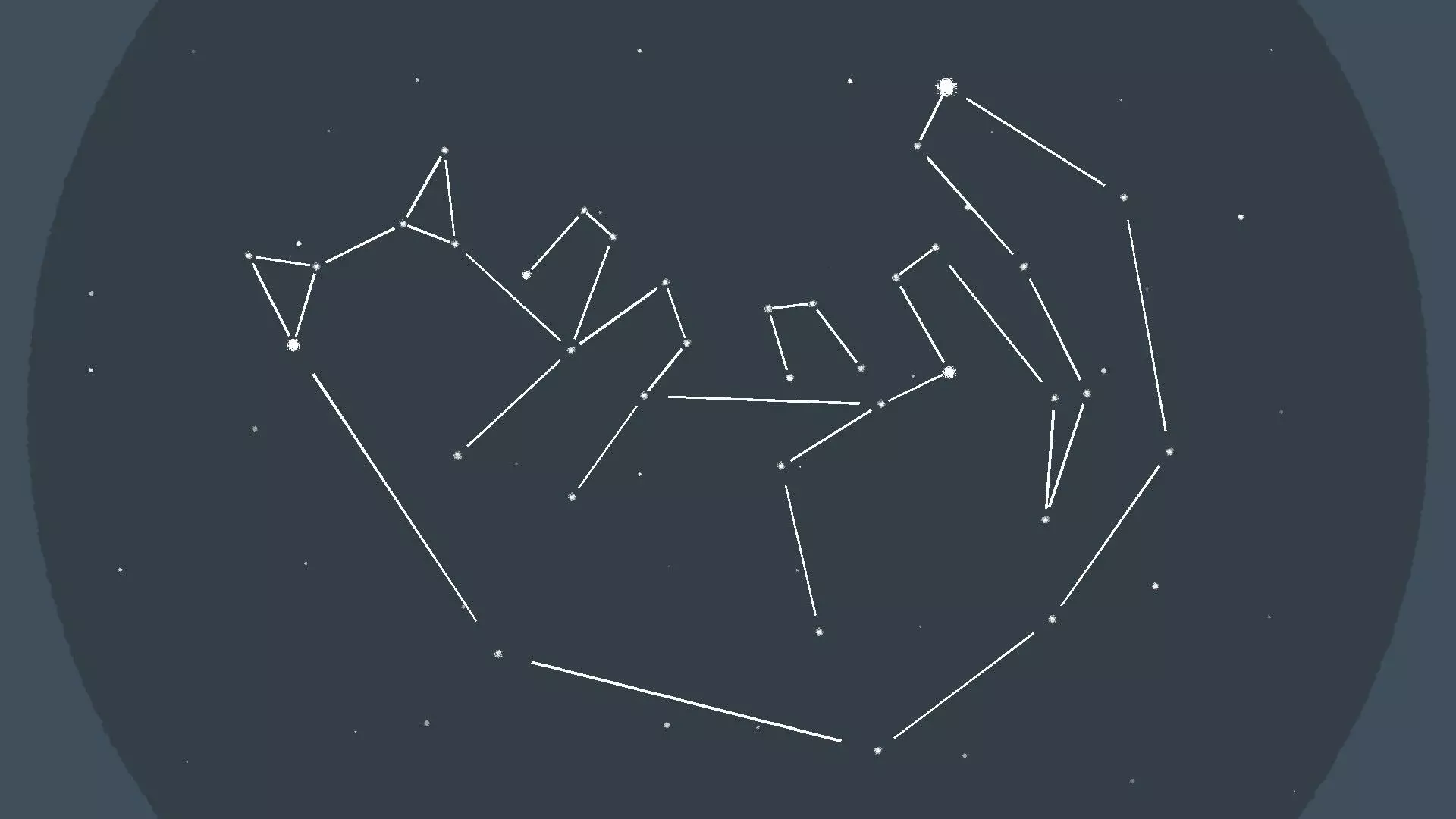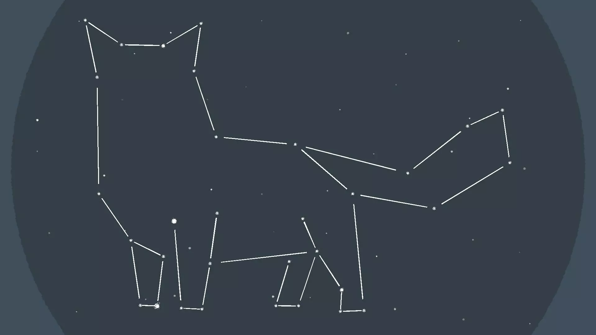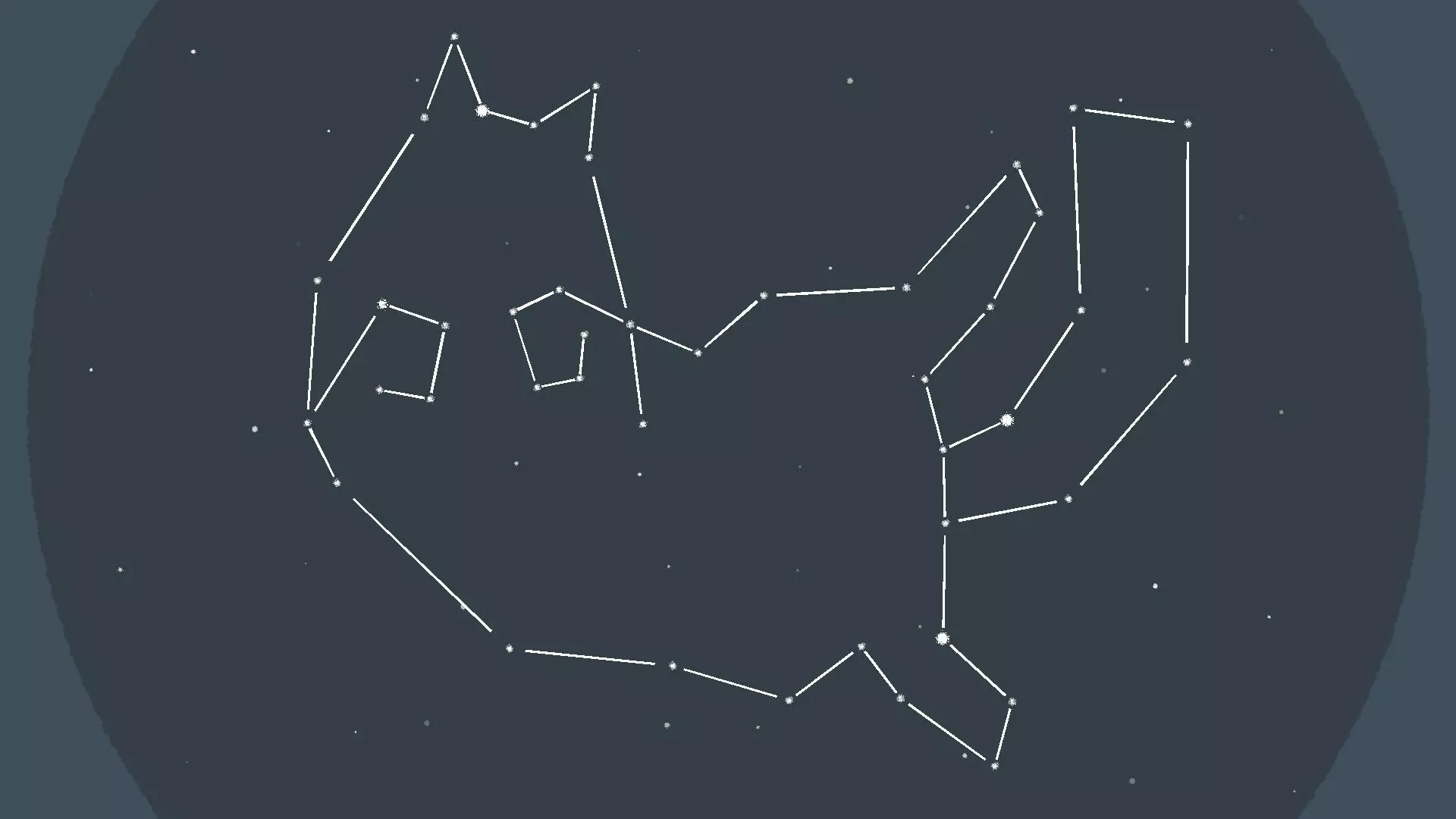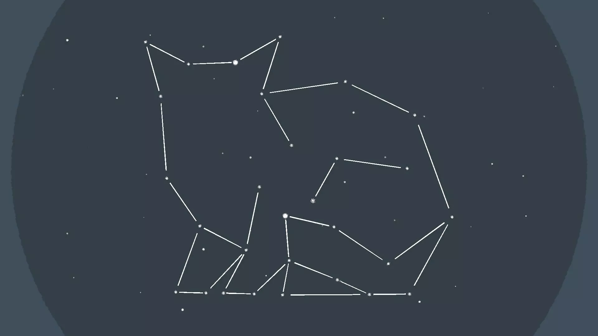 星座 [与第5章-第4关相同] 拖动星星来完成三个猫咪星座,当你接近时会看到并听到静电声——只有那些比其他星星稍大且更亮的星星可以被拖动。 提示: 如果你找不到可拖动的星星,它们通常位于星座中已确定星星的附近。 星座选项1