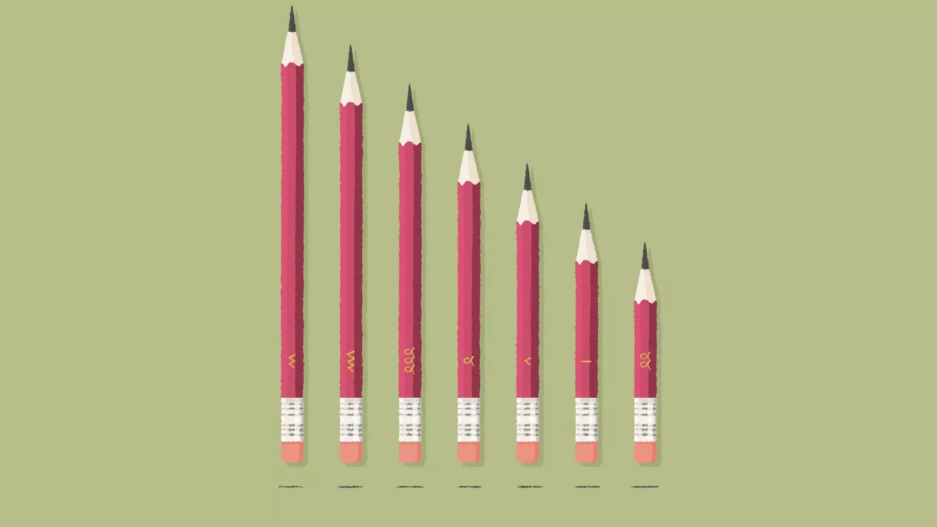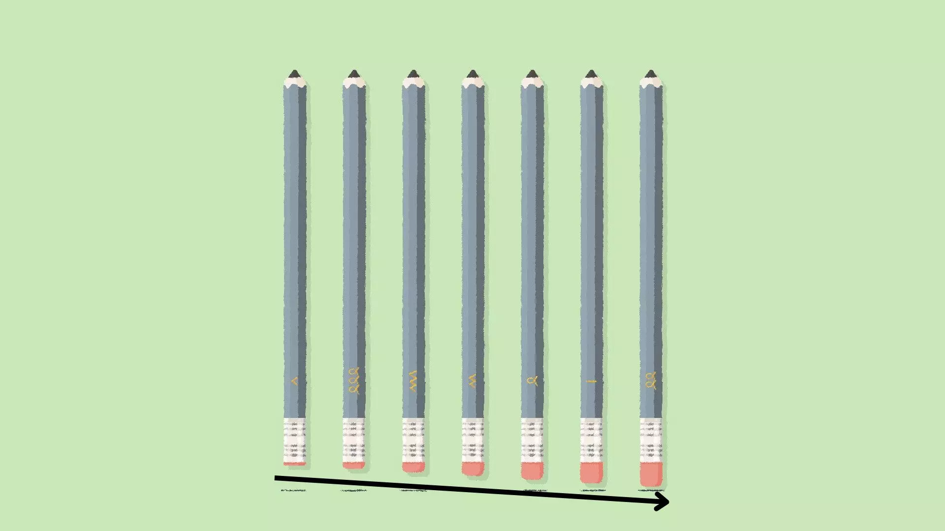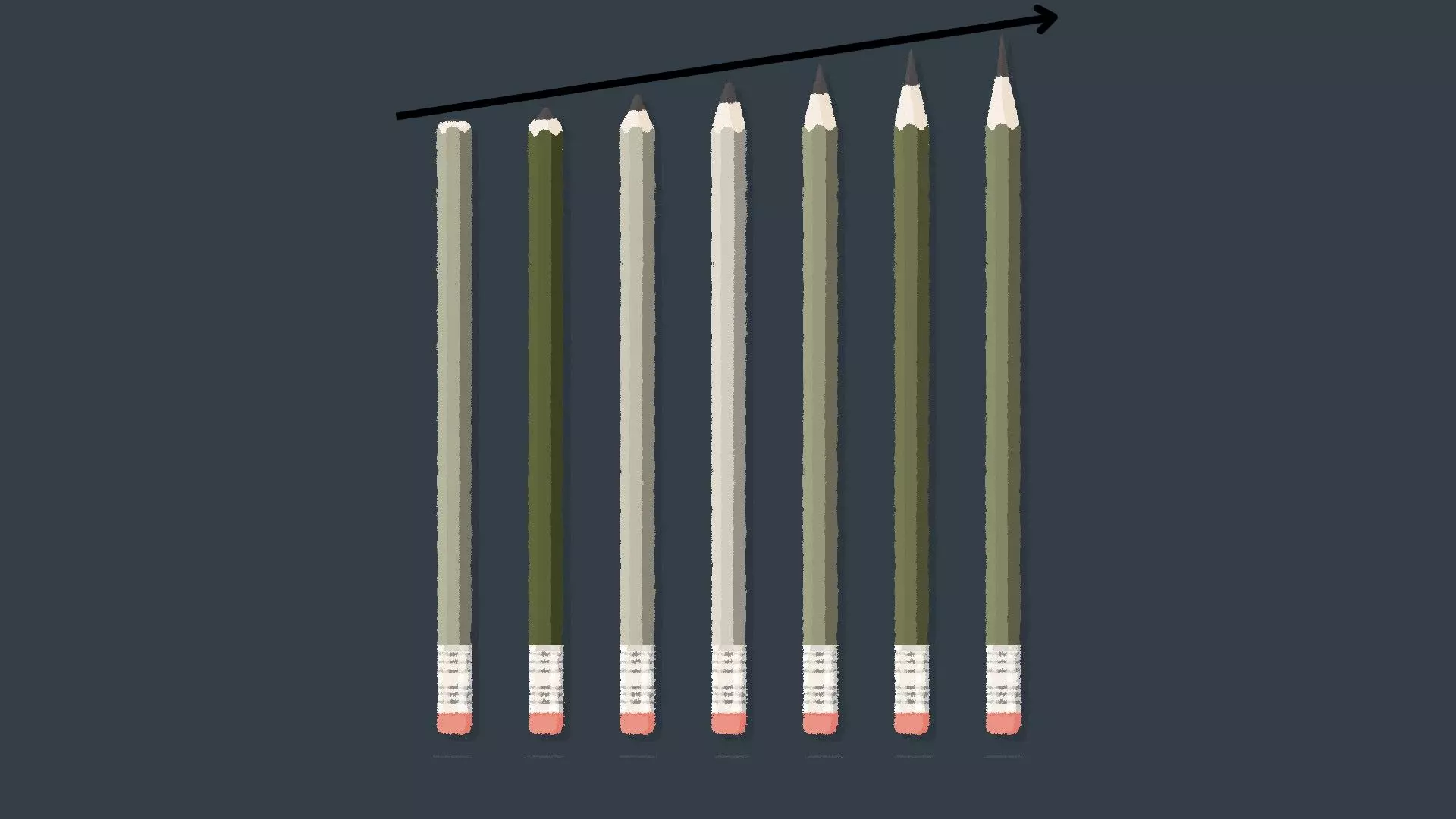 渐变解决方案 [与第一章 - 第三关类似] 如果你的铅笔是彩色的,那么你可能需要采用基于渐变的解决方案。 将铅笔按照从最浅到最深的色调排列,或者从最深到最浅排列。 示例