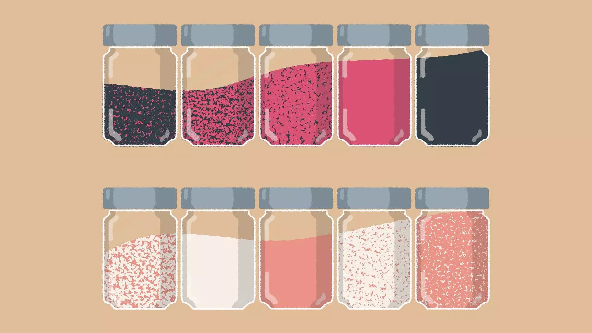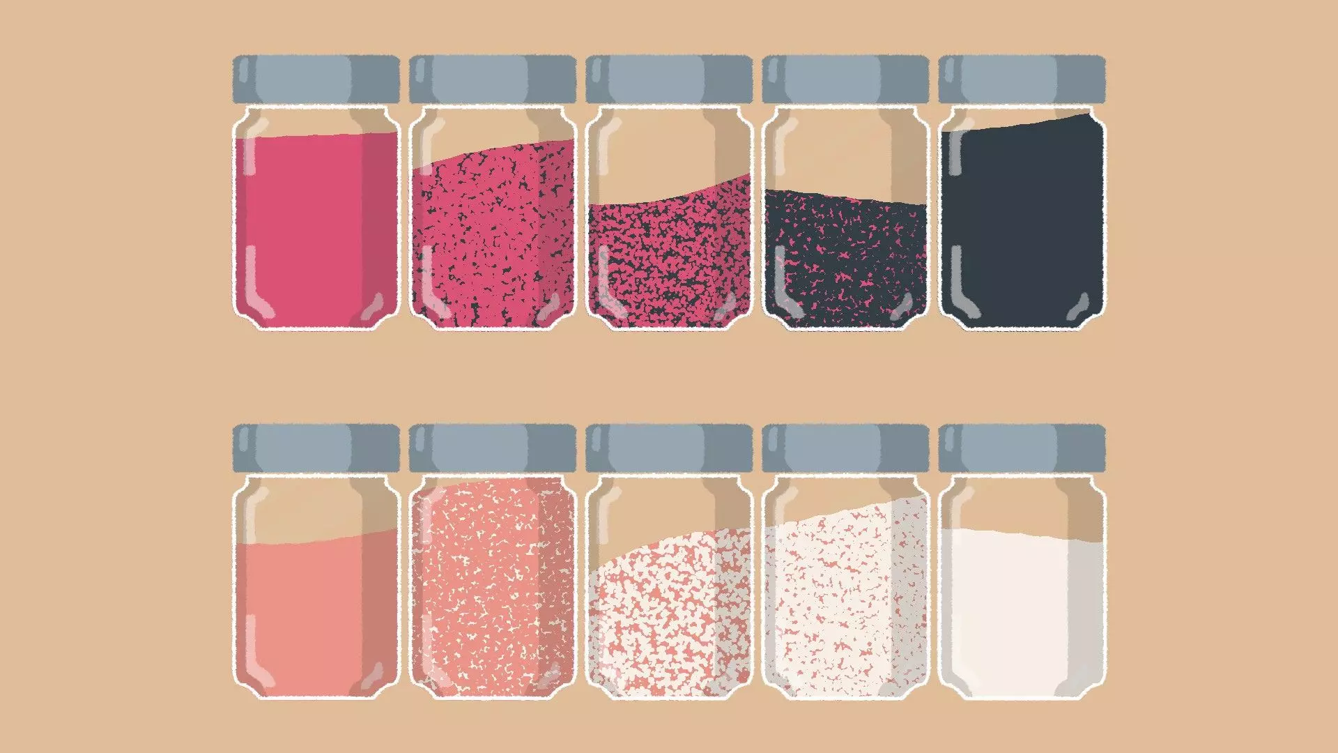 香料罐 [与第二章 - 第5关相同] 香料罐关卡包含两种解法:按颜色渐变排序,以及按香料量匹配并使液体流动顺畅排序。 解法一: 根据颜色对香料进行排序以形成渐变效果,例如纯红色、以红色为主、以黑色为主、纯黑色。 示例