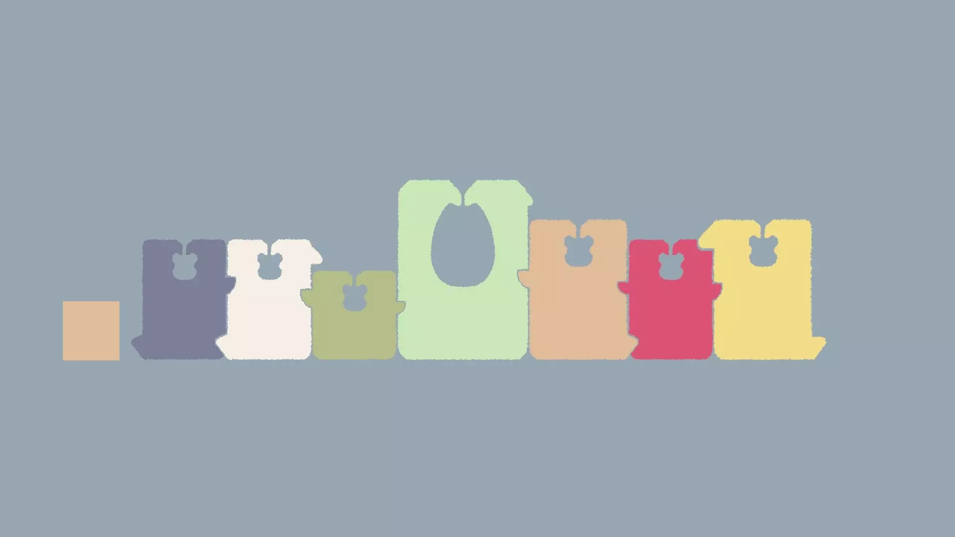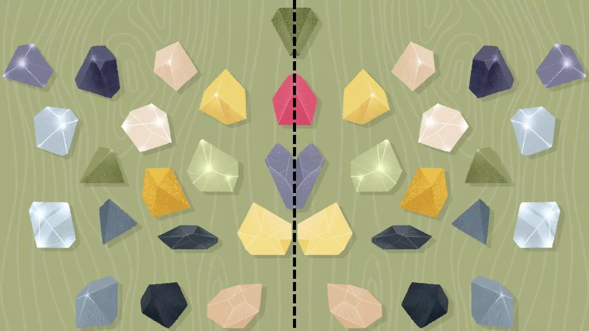 对称 [与第4章-第7、10、13关相同] 用物品创建对称图案,通常每种形状或物品会给两个,但也会有一些独特的物品或形状,这些要放在中心位置。 这类谜题可能比较棘手,只需轻微移动物品,直到听到“叮”的提示音即可。 示例