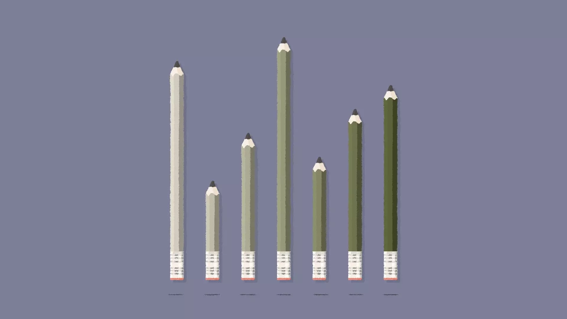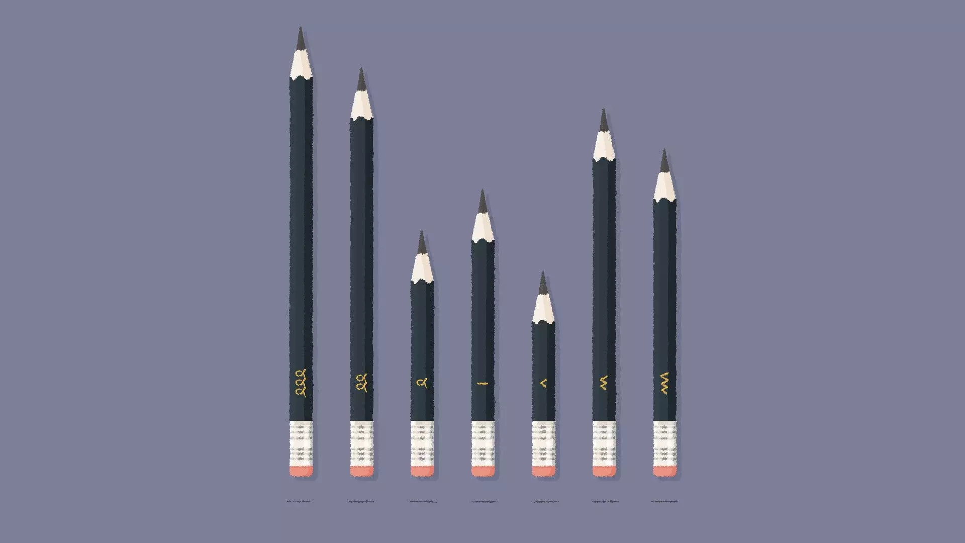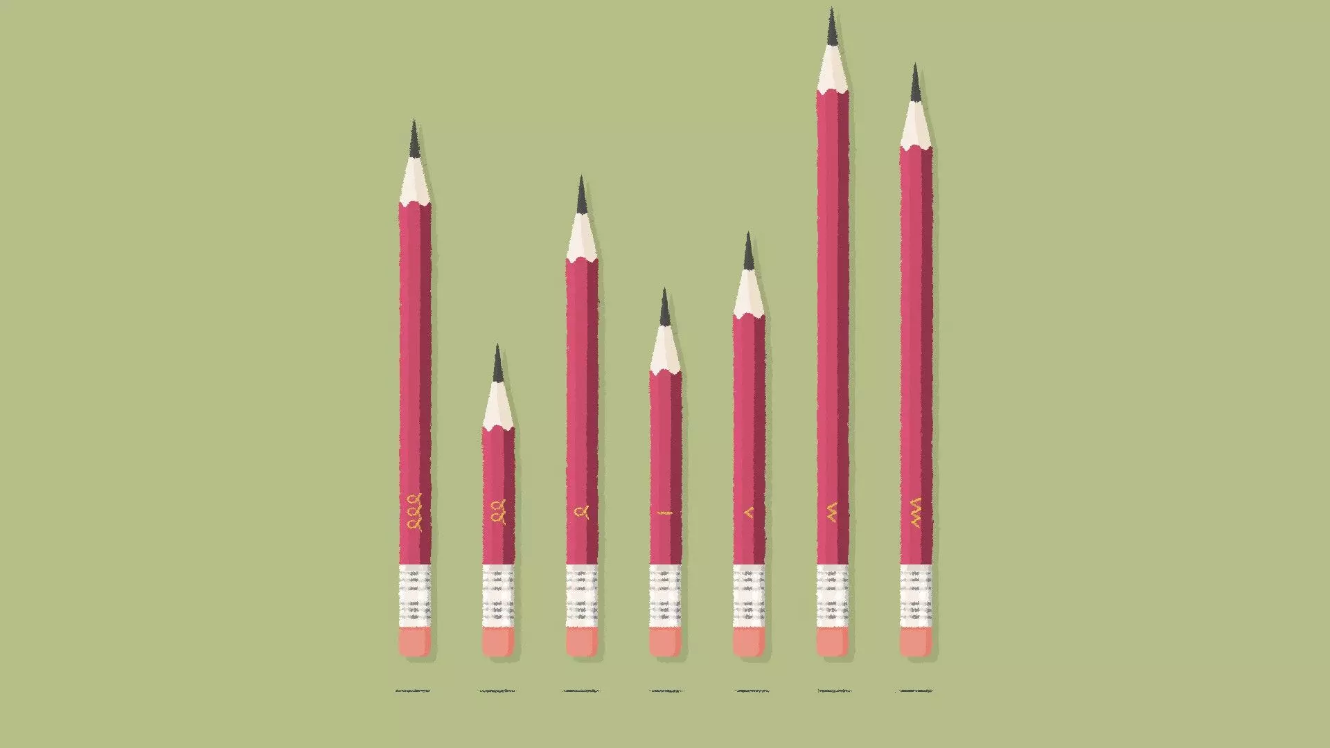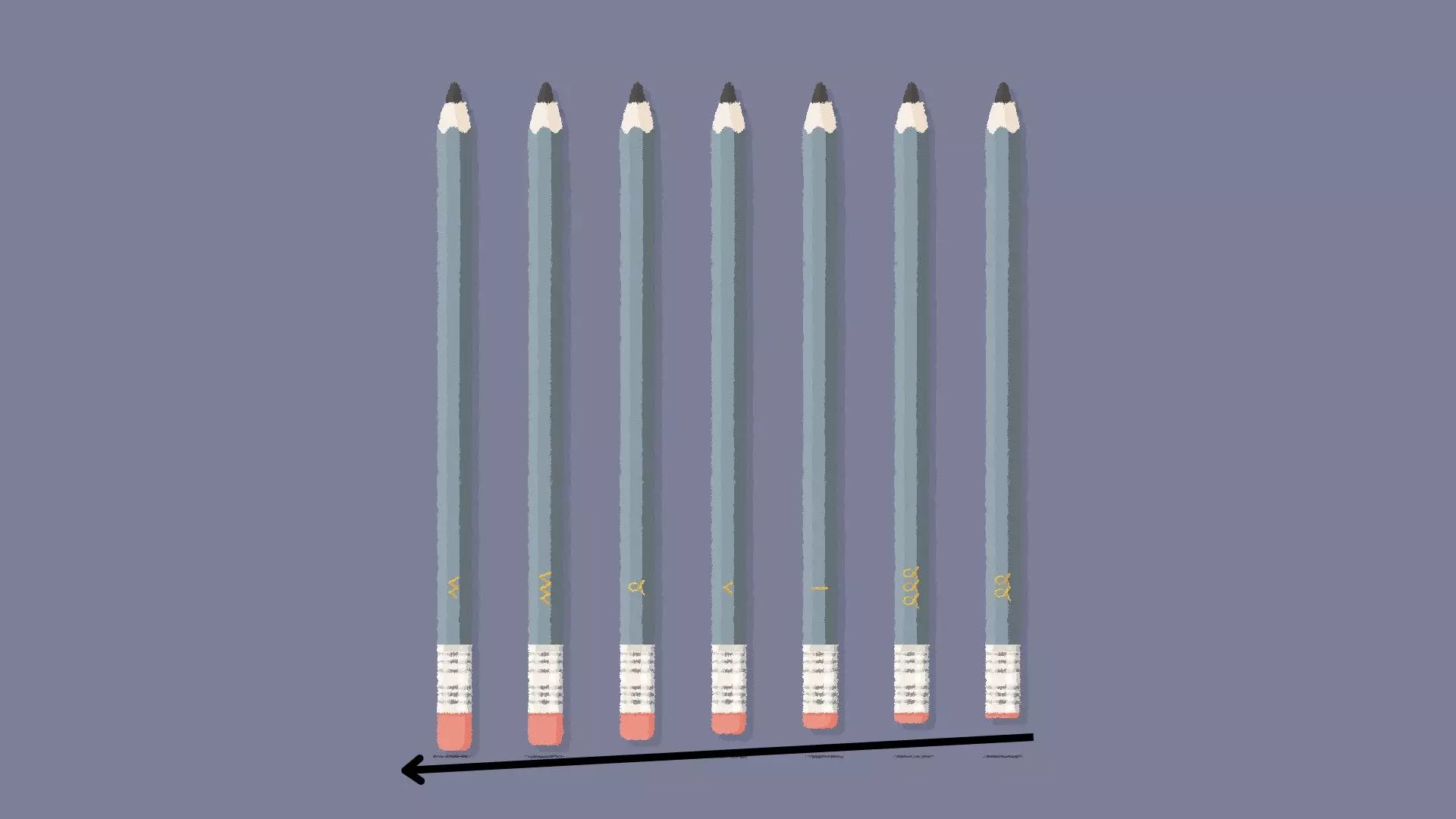 铅笔 铅笔关卡通常有2种解法,且解法可能不同。 解法可能基于:高度、橡皮大小、尖锐度、符号或颜色。 高度解法 [与第1章-第19关相同] 如果你的铅笔高度各不相同,那么很可能是基于高度的解法。 将铅笔按从高到矮或从矮到高的顺序排列。 示例