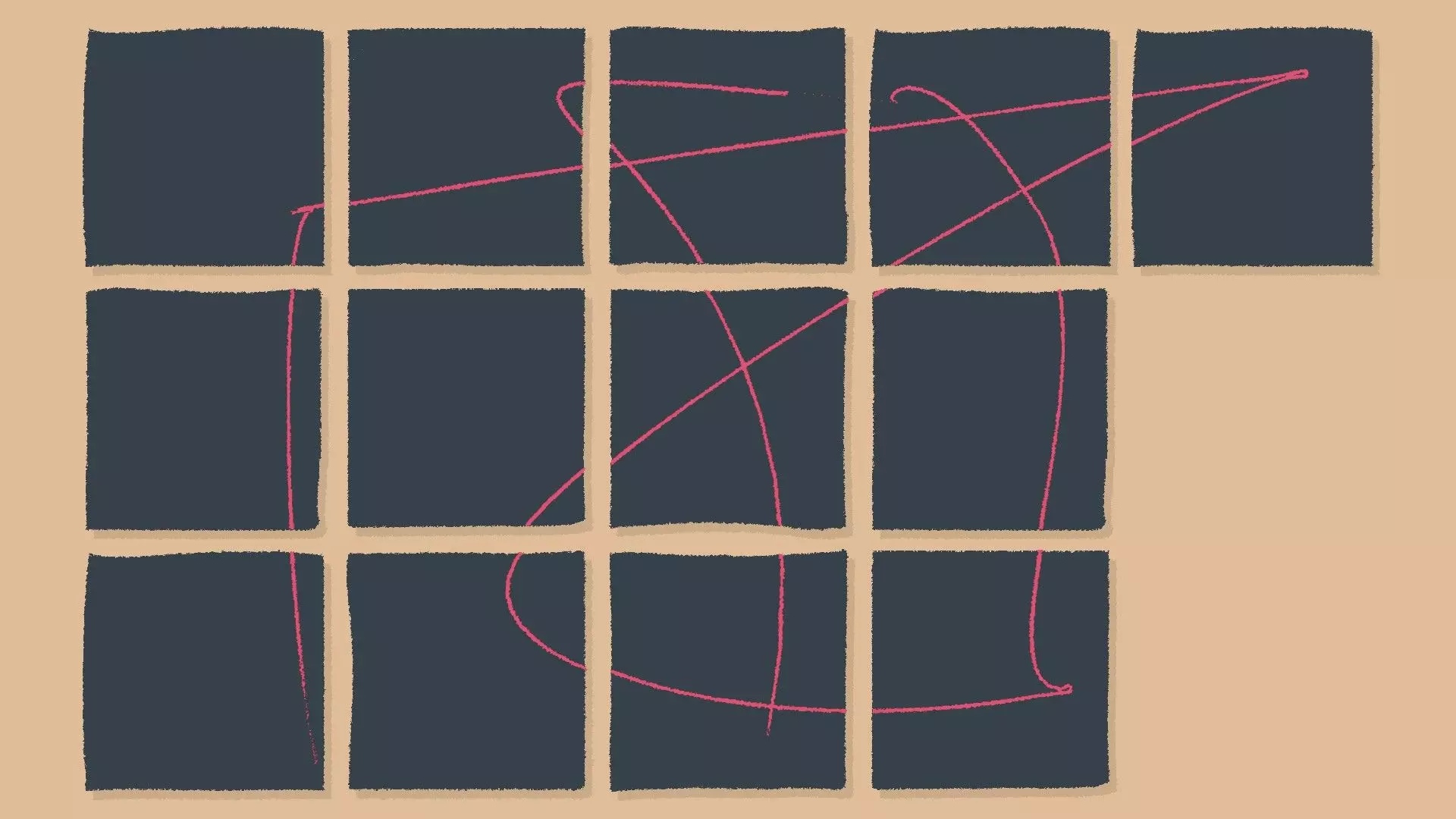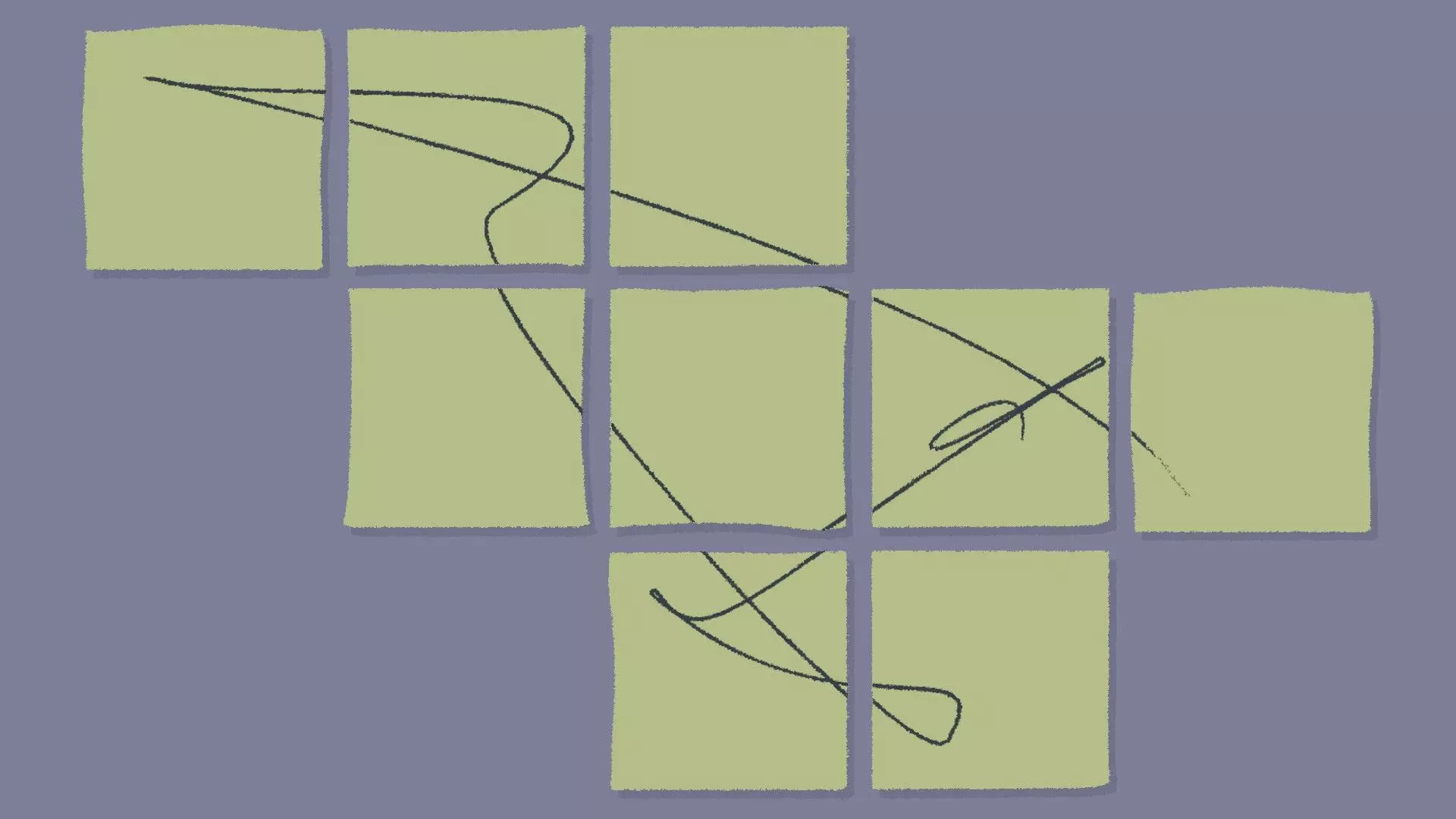 我们已经放置好了所有苍蝇,并将发光的萤火虫放在中央以触发蜘蛛。 便利贴 【与第一章 - 第4、10和15关相同】 拖放便利贴,使所有线条连接形成涂鸦。 示例