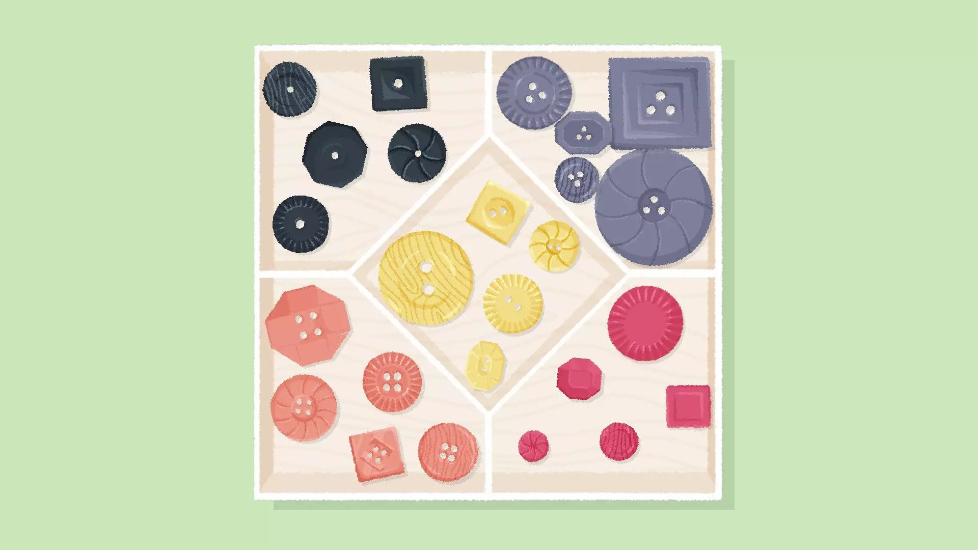 纹理解决方案 根据纹理对按钮进行分类,例如格子纹、木纹或波纹 示例
