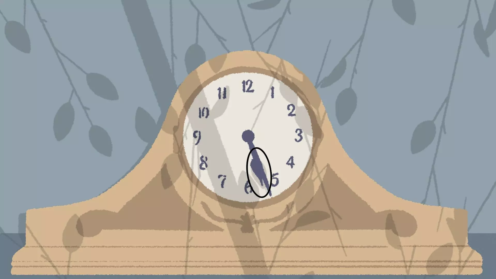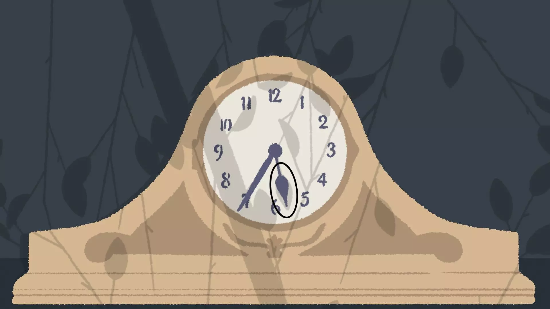 已完成 时钟 [与第五章 - 第二关相同] 旋转时钟的时针,使其与树叶的影子对齐。 示例