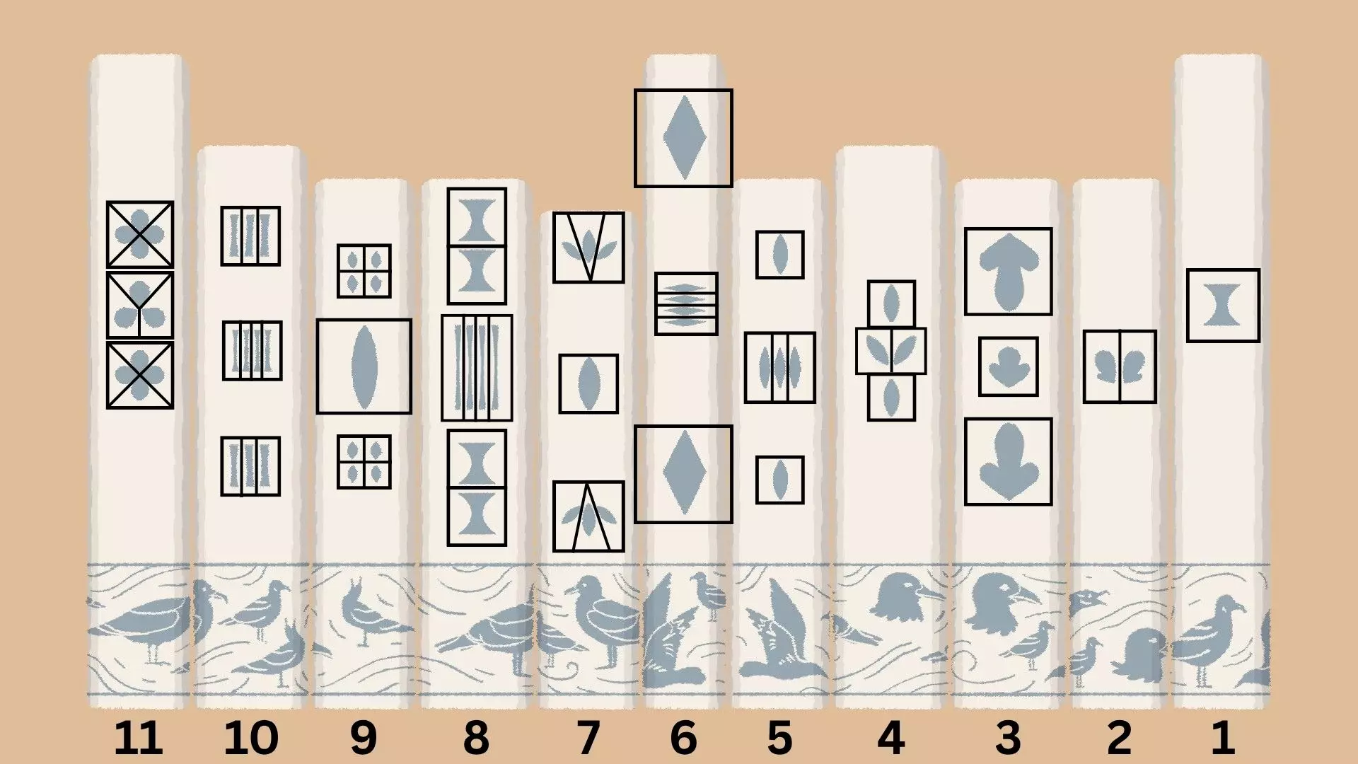 即将推出 符号解法 [与第一章 - 第19关相同] 如果你的铅笔底部附近有符号,那么你需要使用基于符号的解法。 将铅笔排列,使符号显示为: 3个波浪线 - 2个波浪线 - 1个波浪线 - 单横线 - 1个三角形 - 2个三角形 - 3个三角形 或者 3个三角形 - 2个三角形 - 1个三角形 - 单横线 - 1个波浪线 - 2个波浪线 - 3个波浪线 示例
