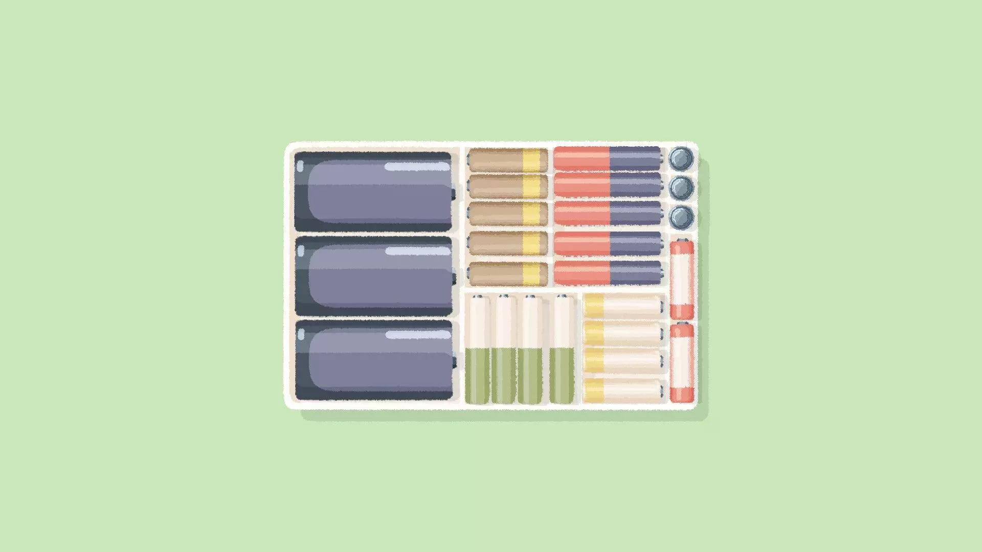 Highly Decorated 解锁所有日常整理徽章等级 电池 [与第三章-第二关相同] 将每种电池类型分类到对应的隔间中。 提示:拿起电池时电池移动的方向会提示你它们应该放置的位置。 示例