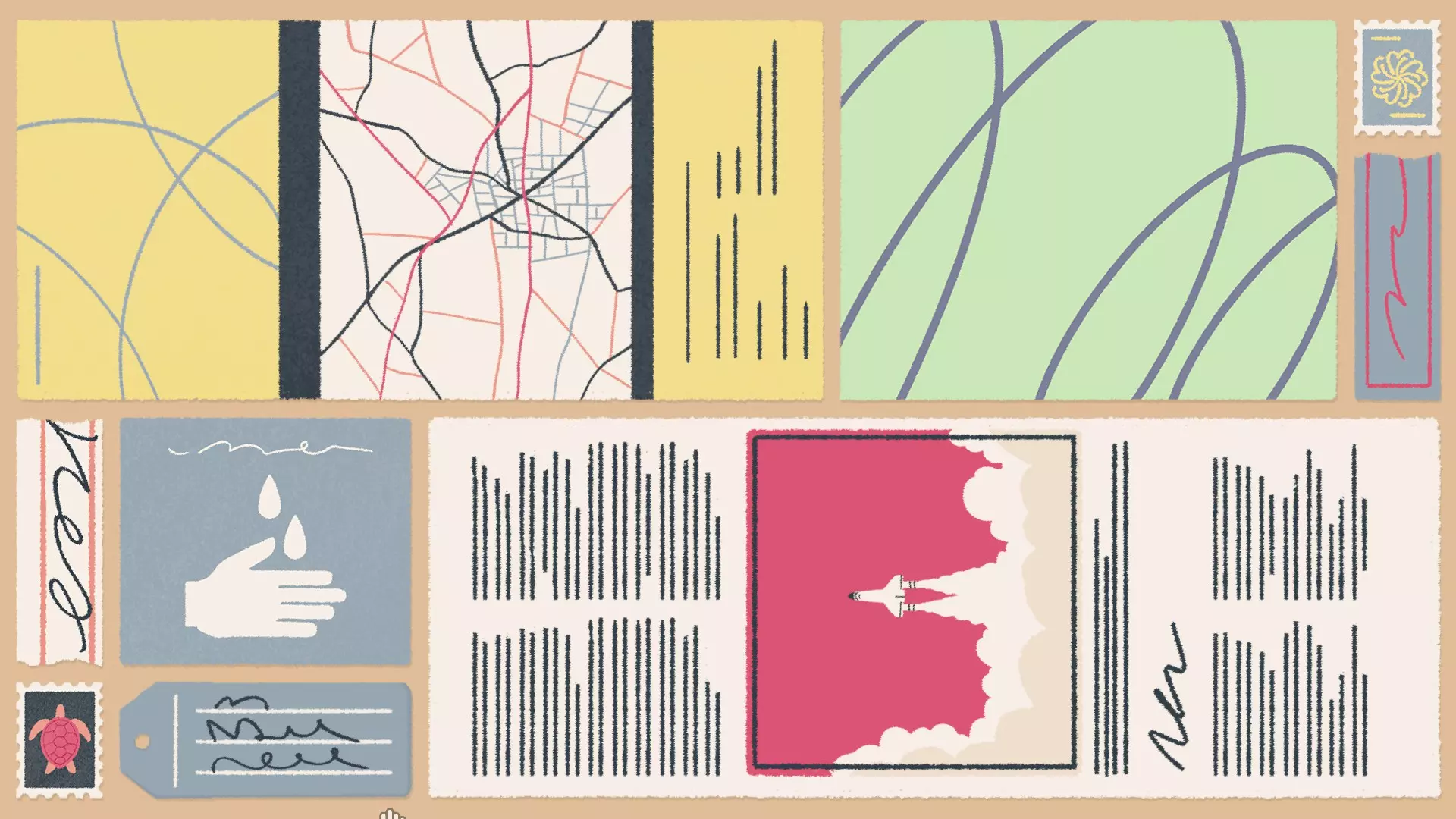 废纸【页面适配】 【与第一章-第17关相同】 使用所有纸张,将它们全部拼合在屏幕上,确保不重叠。 示例
