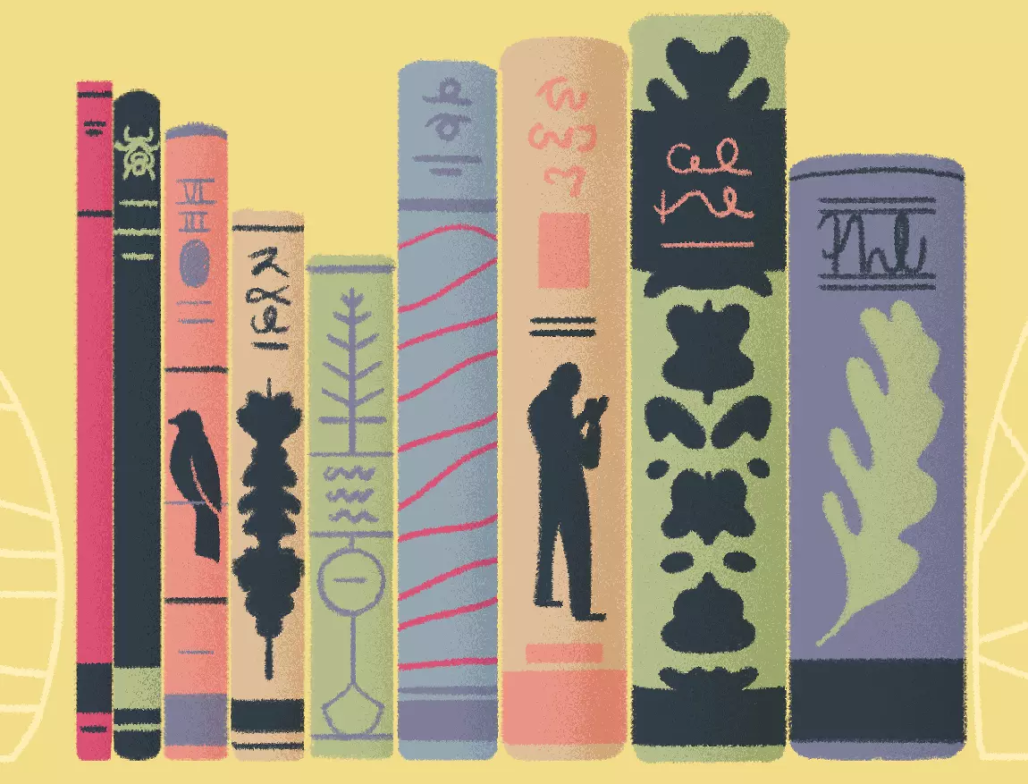 书籍,再来一次 提示:这里的书脊都有一个共同点。 解释:排列书籍,使每本书上的水平条纹逐渐形成一条上升(或下降)的线。 答案: