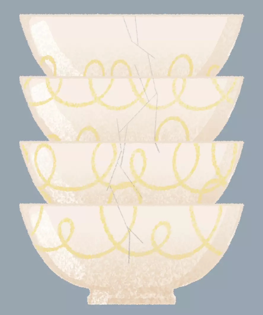 碗 提示:这些碗肯定是堆叠时掉落的。 说明:将碗上的裂缝对齐。 解法: