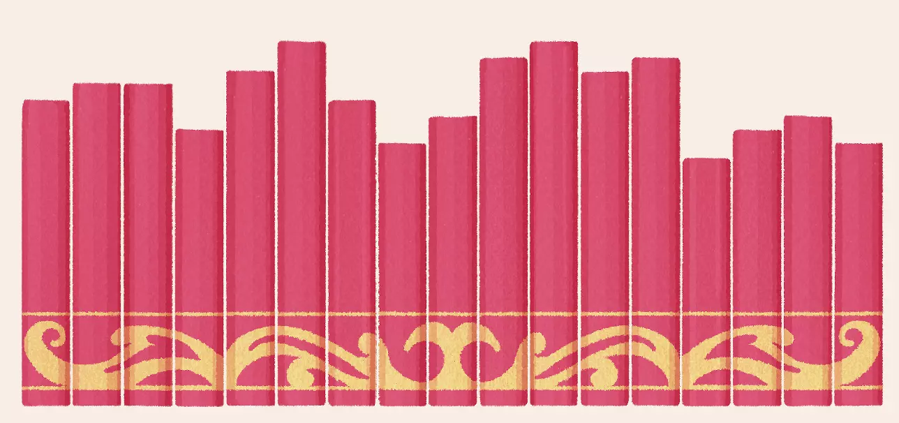 书籍,再来一次 提示:这些书的书脊相当精美。 说明:排列书籍,使书脊上的金色装饰形成对称图案。 解法: