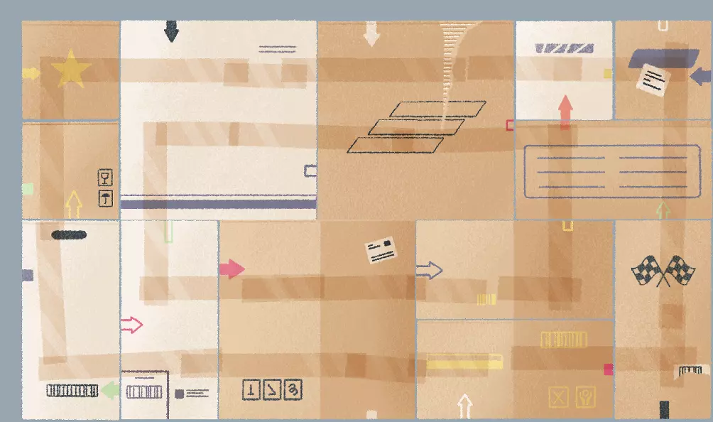 移动箱子 提示:这些箱子真的需要那么多胶带吗? 说明:堆叠箱子,使胶带线对齐。 解法: