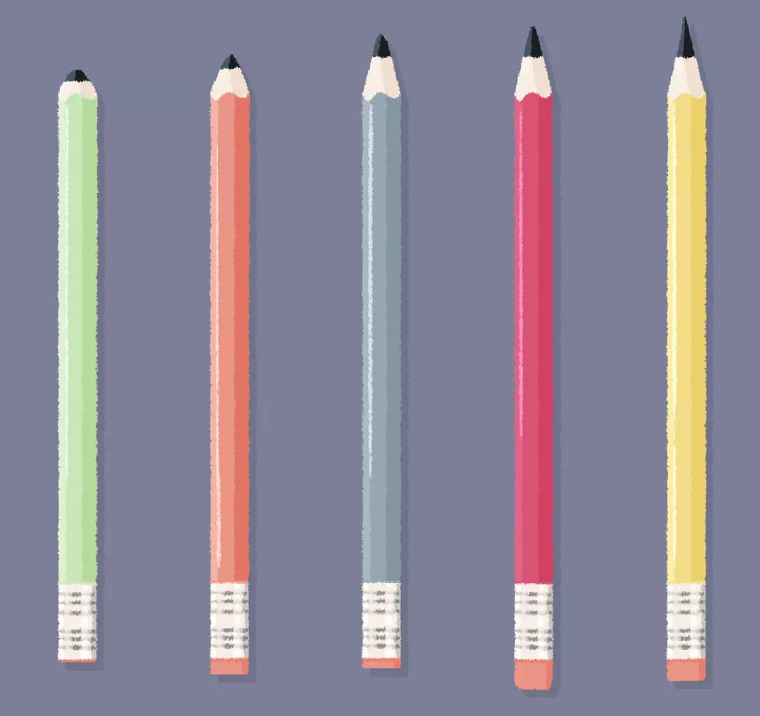 提示:有人真的很喜欢绿色。 说明:按照铅笔笔尖的磨损程度整理铅笔。 答案:
