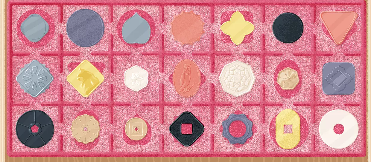 纽扣盒 提示:比起按颜色,有一种分类方式更与线的实用性相关。 说明:按纽扣的孔数整理。 答案:
