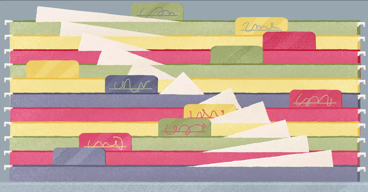 文件 提示:有人在部分文件的标签上乱涂乱画。 说明:按颜色整理文件——标签上文字的颜色指示了哪些颜色的文件应相邻放置。 解法: