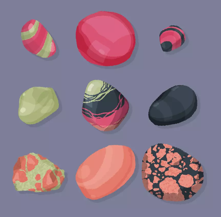 岩石 提示:尝试用+号代替X。 说明:按照标准解法的类似方式排列岩石,将全色岩石(omnirock)放在中间,纯色岩石放在正方向位置,混合岩石放在角落。 解法: