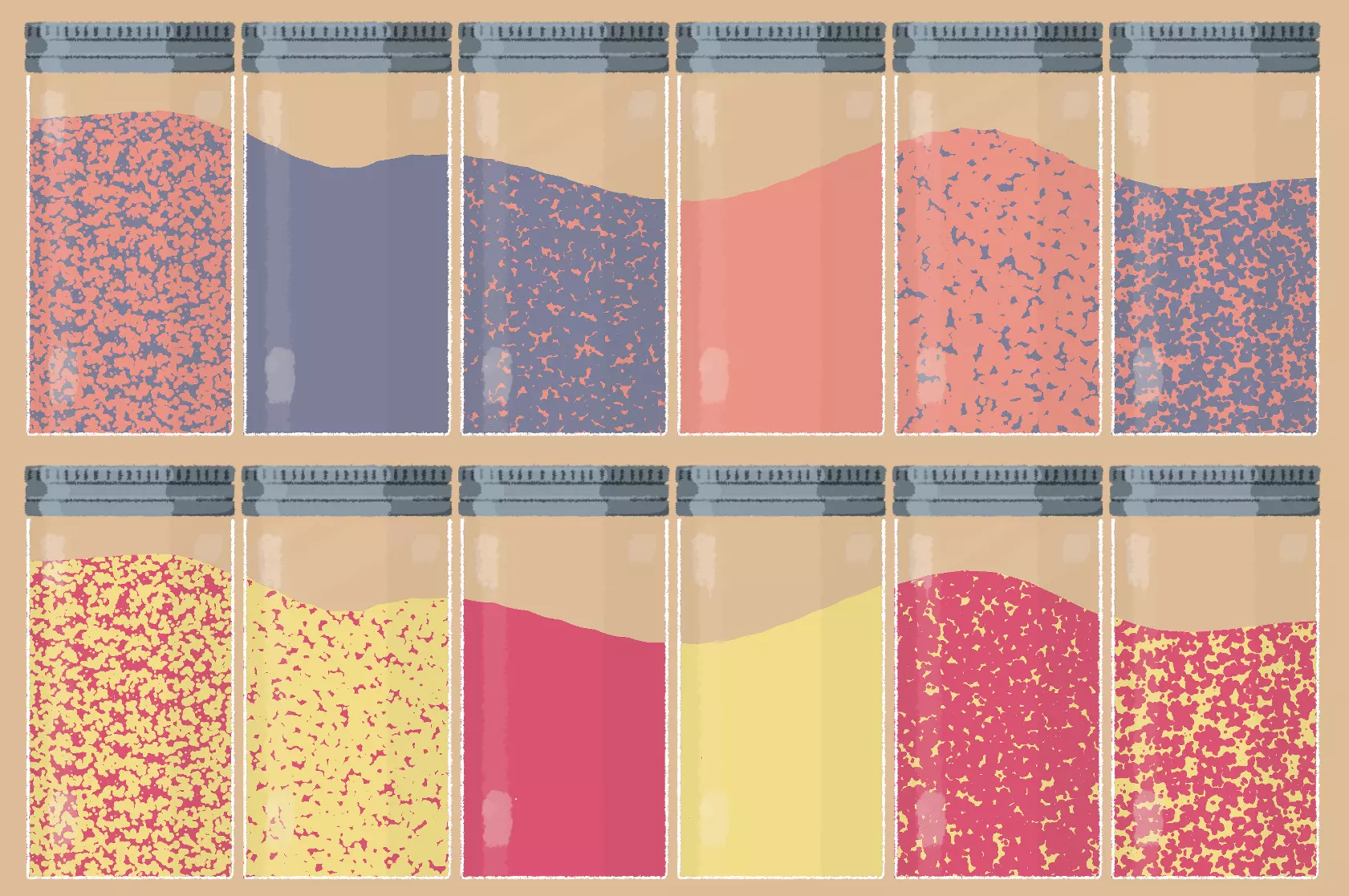 谷物罐 提示:谷物的高度看起来像风景的一部分。 说明:排列罐子,使谷物线条形成一条连续的线。 解法: