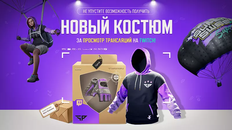 活动时间:周五,12月23日,16:00 - 周一,1月2日,15:59(GMT+8) 十二月TWITCH DROPS活动 观看合作主播直播可获得奖励: • 观看1小时可获得奖励【Twitch手套】 • 再观看3小时可获得奖励【Twitch卫衣】 观看“SUPER PEOPLE”分类下的直播可获得奖励: • 观看2小时可获得奖励【Twitch降落伞涂装】
