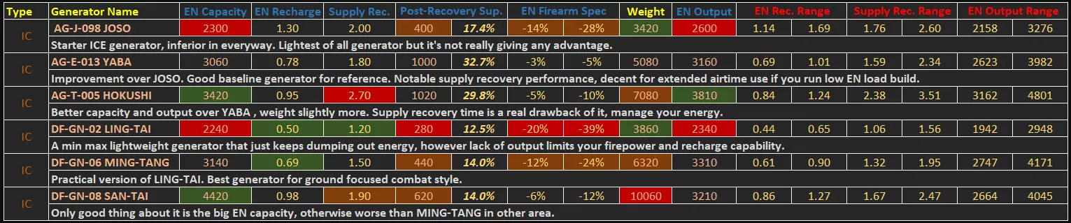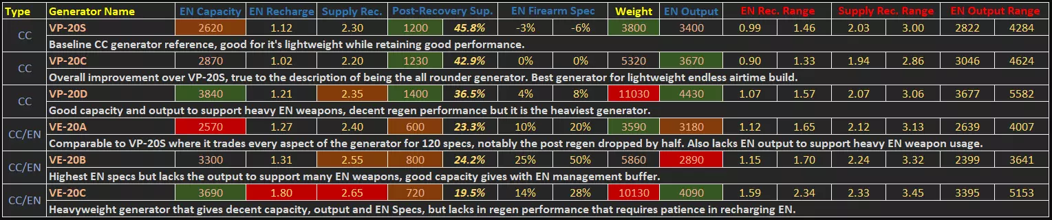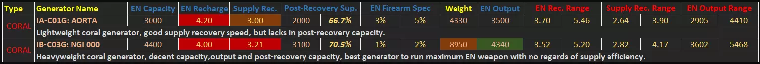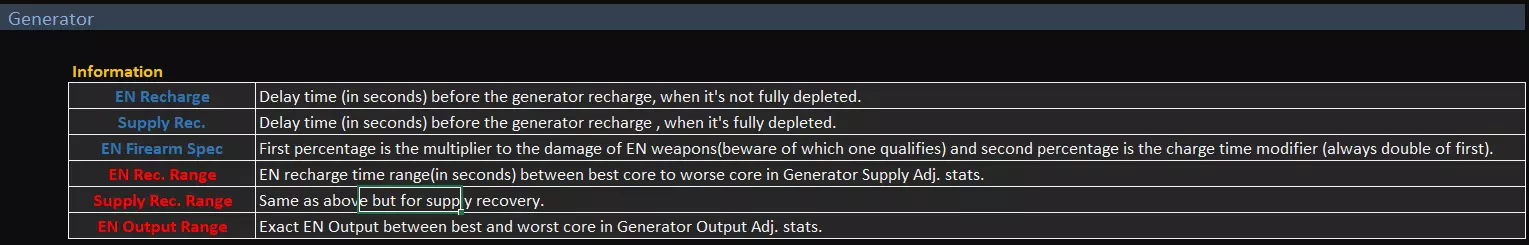 AC骨架 目前所有数据均已在游戏内正确显示,没有其他额外数据。通常你只需知道,那些应有计量单位的数值,其单位均为米或秒。扫描仪的距离和时间单位分别为米和秒,垂直跳跃高度单位为米,方向跳跃的数值在不同腿部之间具有可比性,但并非实际米数。 推进器/火控系统 同样没有额外数据。推进器与时间相关的数据单位均为秒。可根据个人偏好或预期用途选择推进器。 火控系统辅助值低于50时,锁定(红色准星)启动速度较慢,目标引导效果较差。高于50时,锁定效果良好,能很好地引导射击提前量。70以上时,锁定几乎会立即启动并强力追踪前方目标。修正值是实际锁定时间的倍数(120表示120%,即锁定速度快1.2倍)。 火控系统(FCS)的选择非常重要,请根据你偏好的战斗风格和距离选择合适的火控系统。近距离辅助适用于手枪/霰弹枪,近+中距离辅助适用于一般枪械战斗范围。远距离辅助通常没什么用,因为大多数武器在该距离要么会跳弹,要么会因子弹飞行时间过长而打偏。但在接近某些特定敌人时,启动锁定至关重要。