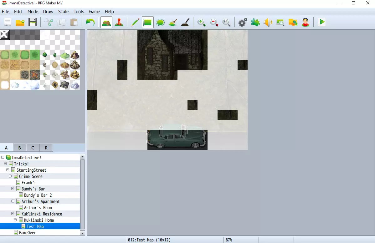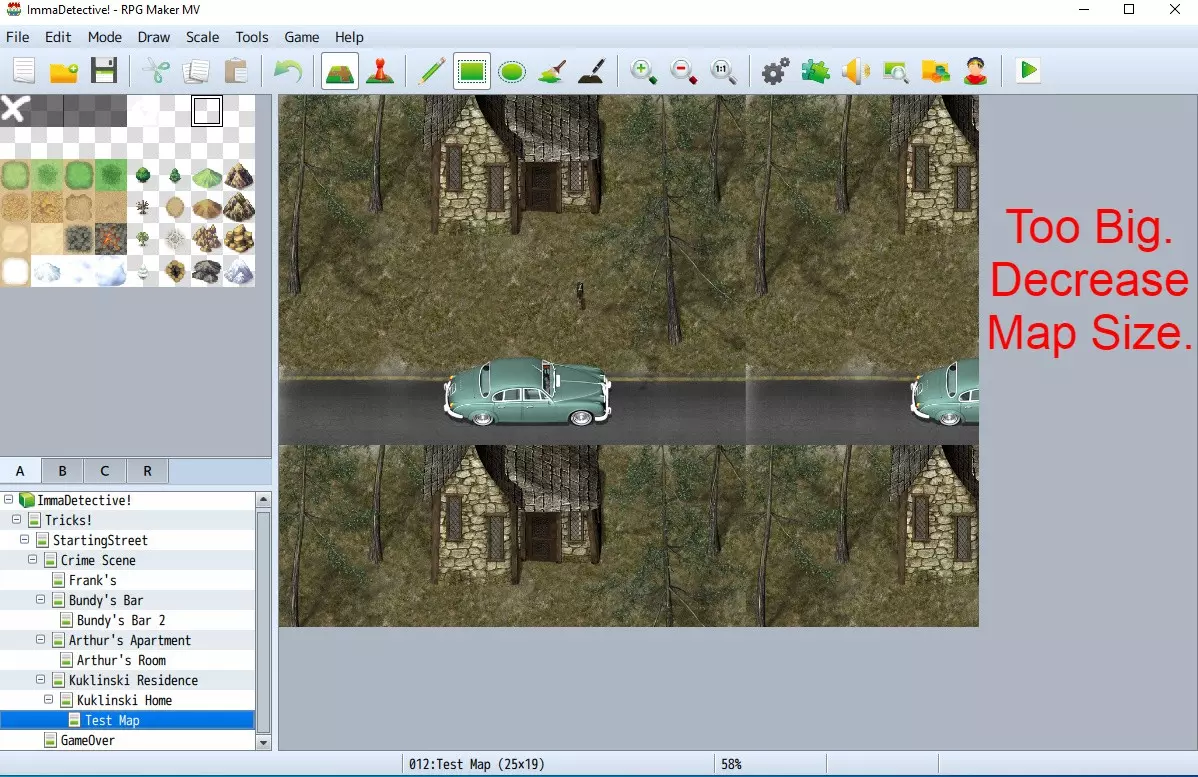 现在,如果你不想使用传统的MV地面/墙壁图块,也可以先在你的图像编辑软件中新建一个空白图像,之后再创建实际的地图文件。这样做也没问题,你只是在改变步骤的顺序而已。选择你觉得更顺手的方式就行。 最后我想提的一点是,无论你是从头开始创建图像,还是从引擎中保存图像,游戏的分辨率都无关紧要。你无需根据地图大小来设置特定的分辨率,反之亦然。我之所以提到这一点,是因为我以前听过一些不同的说法。不用担心这个问题。 绘制并保存地图 接下来,在你的图像编辑软件中打开你保存的地图图像(或者如果你选择不从引擎中保存地图,就新建一个图像)。图像尺寸完全取决于你希望地图的大小。你可能需要根据要用于映射的图像尺寸进行一些尝试。你还需要在软件中打开用于映射的图块/图像,但不是作为地图的图层,而是作为单独的图像。 最后,如果你的照片编辑软件有网格功能,请开启并将其设置为48x48(MV的图块大小)。虽然这不是必需的,但它将极大地帮助你确定图块/图像的放置位置。 接下来就是有趣的实际映射环节!将你的图形复制到地图上,使其变得美观。我强烈建议在操作过程中为图层添加标签(从地面层开始,然后是树木1层、树木2层等),这样可以让内容更有条理。哦对了,记得经常保存带有所有图层的可编辑图像文件。